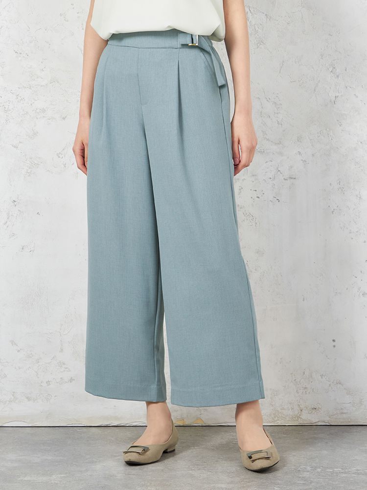 【高通気】WALKPLUSワイドパンツリネンライクベルト付き無地春夏【レディース】