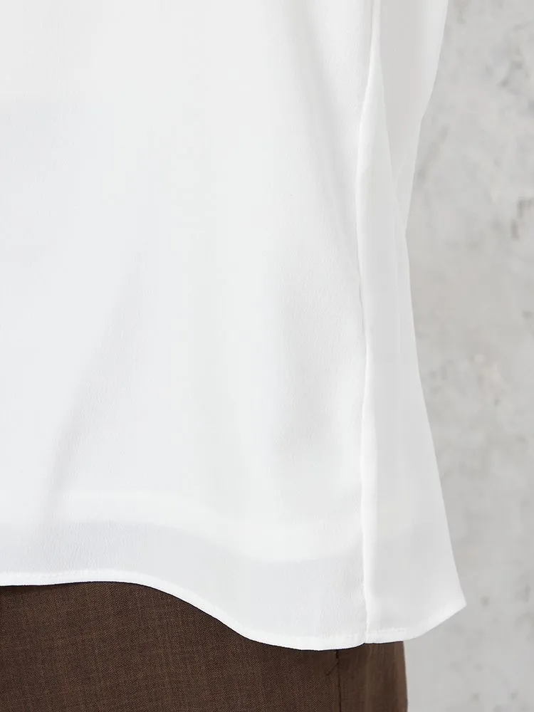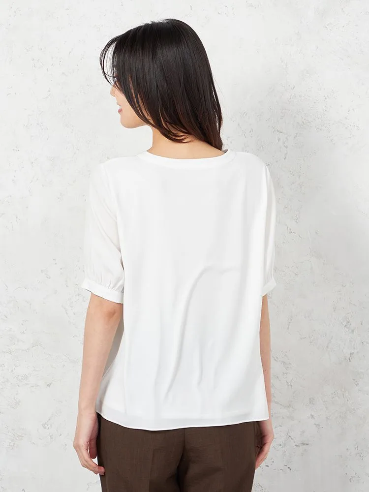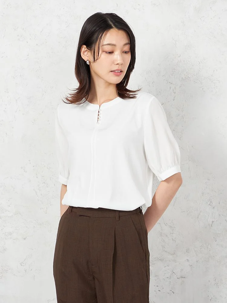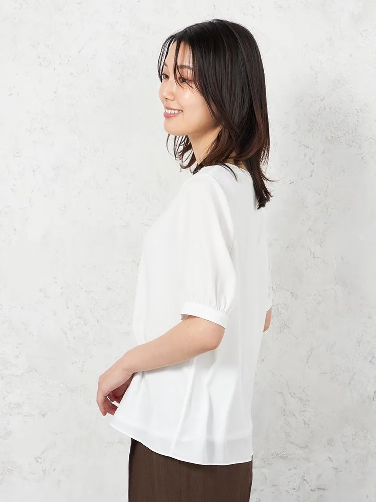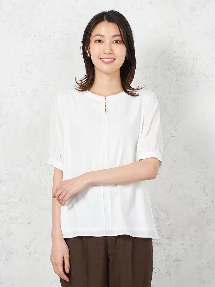 【ウォッシャブル】5分袖 フロントパールブラウス UVカット 透けにくい 無地 SOFFICE 春夏【レディース】(オフホワイト)