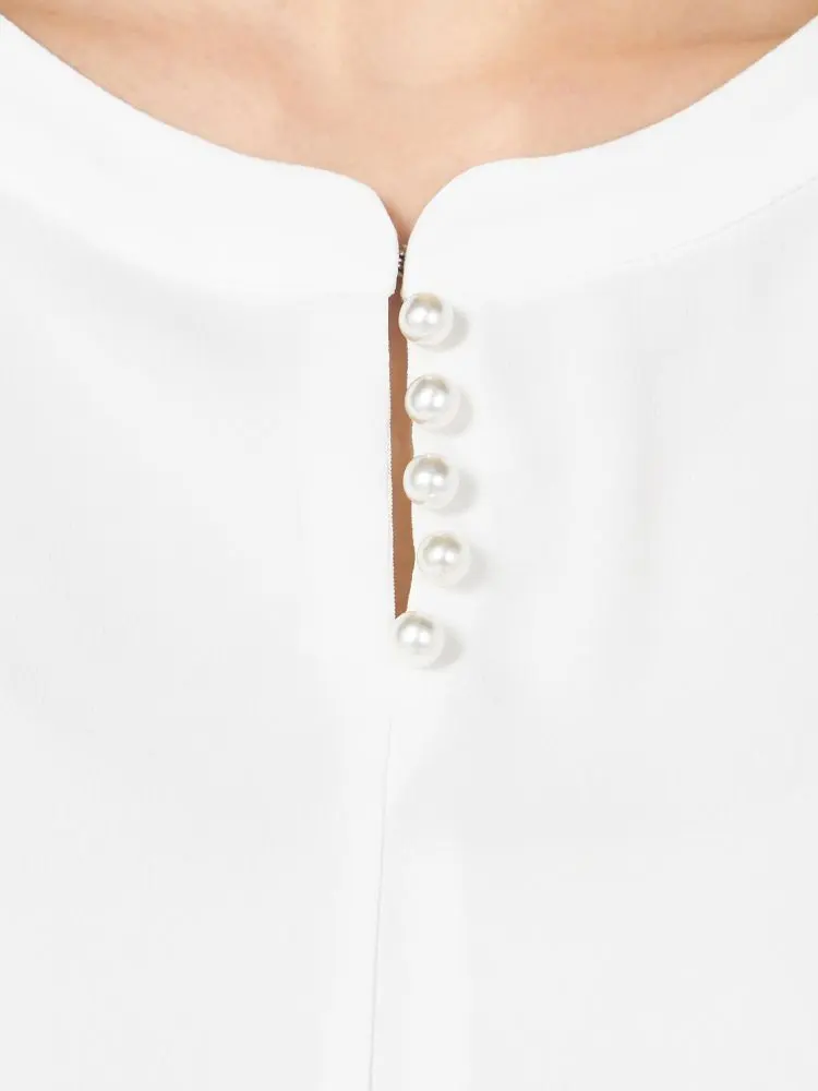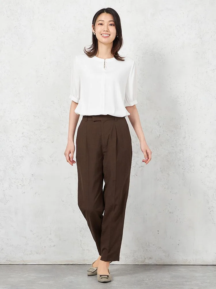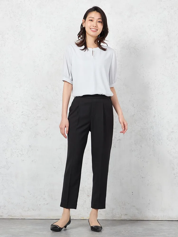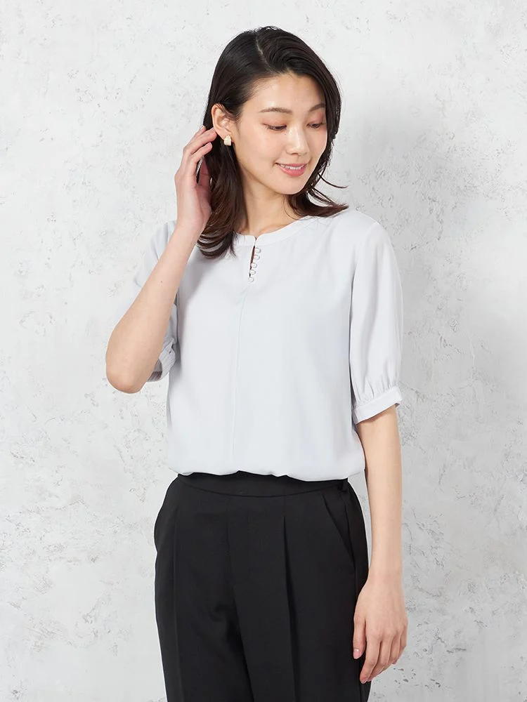 ネックのパール調のボタンが上品なカットソーです。