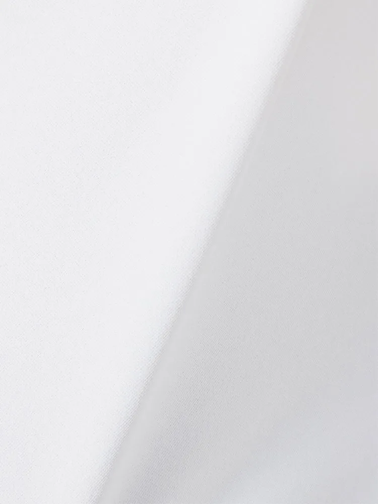 汗を吸収するとクール感を得ることが出来る東洋紡アイスライブ加工を施した半袖の白無地シャツ。