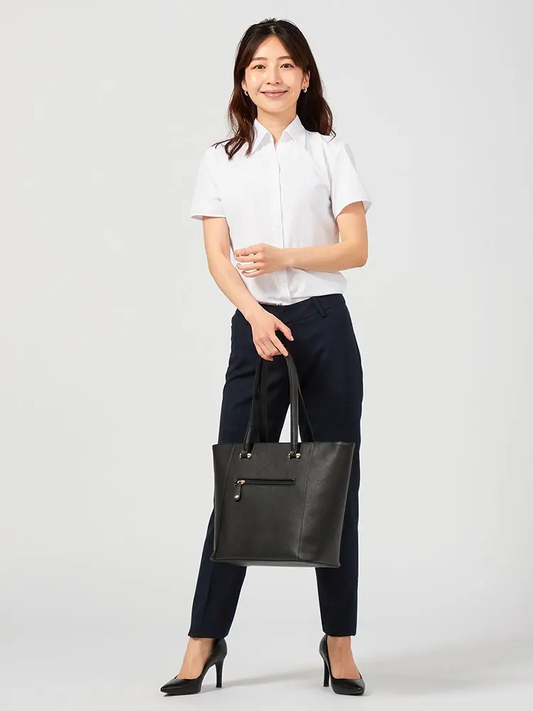 完全ノーアイロン機能付きで、忙しい朝でもシワを気にせずにそのまま着用できます。手間を省ける便利なアイテムです。