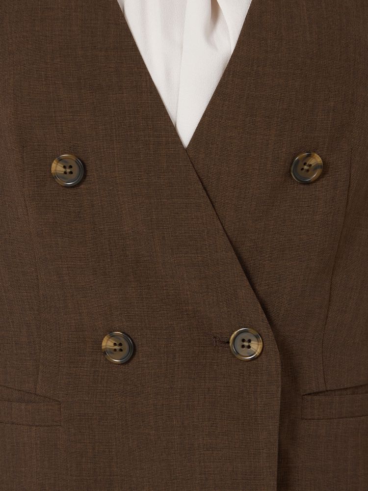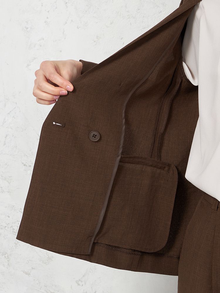 【ウォッシャブル】ノーカラーダブルジャケット リネンライクメランジ生地 無地 SOFFICE 春夏【レディース】(ブラウン)