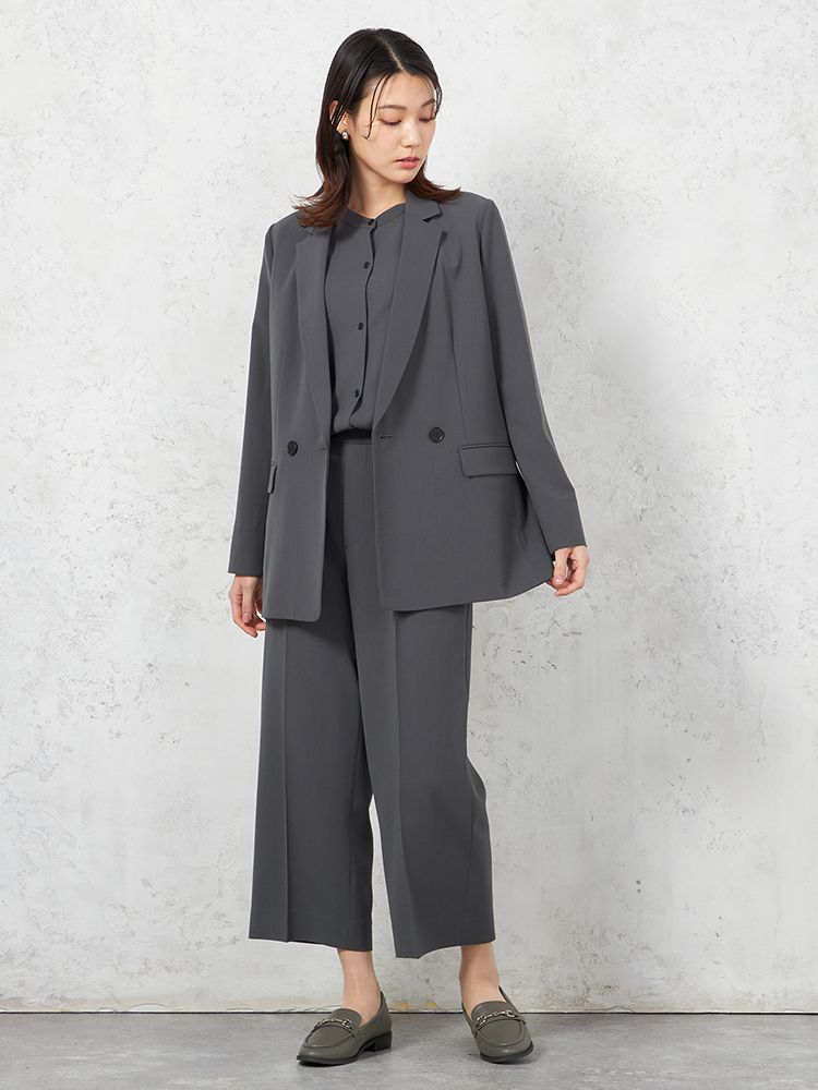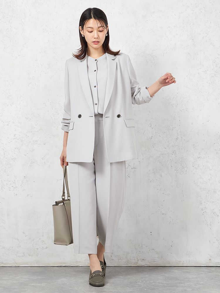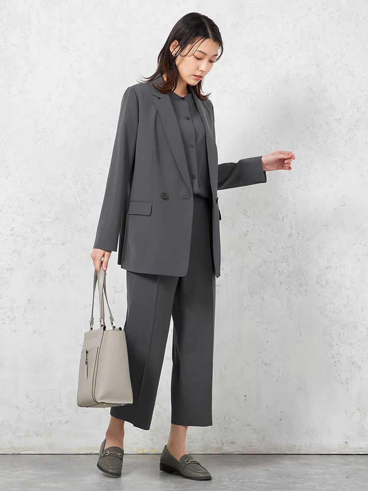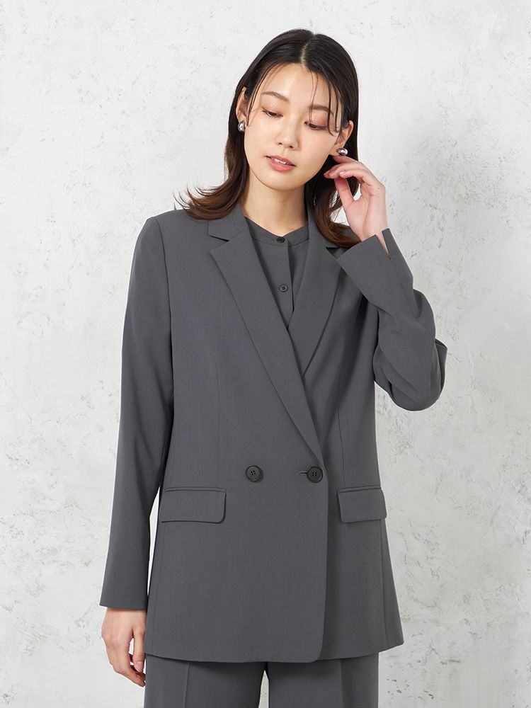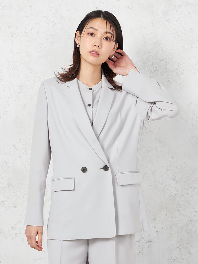【INDIVI】ウォッシャブル クールツイスト ダブルジャケット 無地 【レディース】(C.グレー)