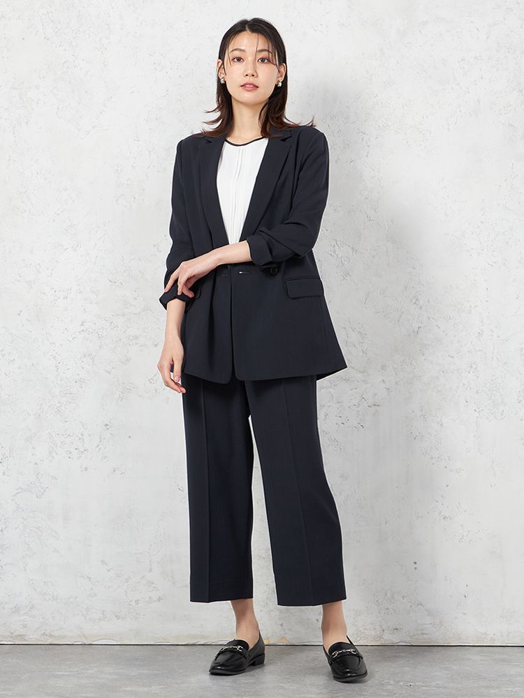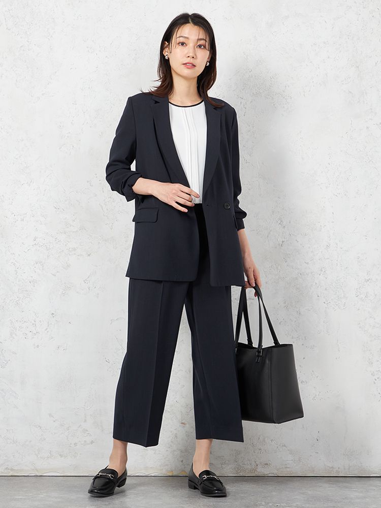 上下セットでコーディネートが簡単に決まるアイテム。シンプルでスタイリッシュな印象を与えます。