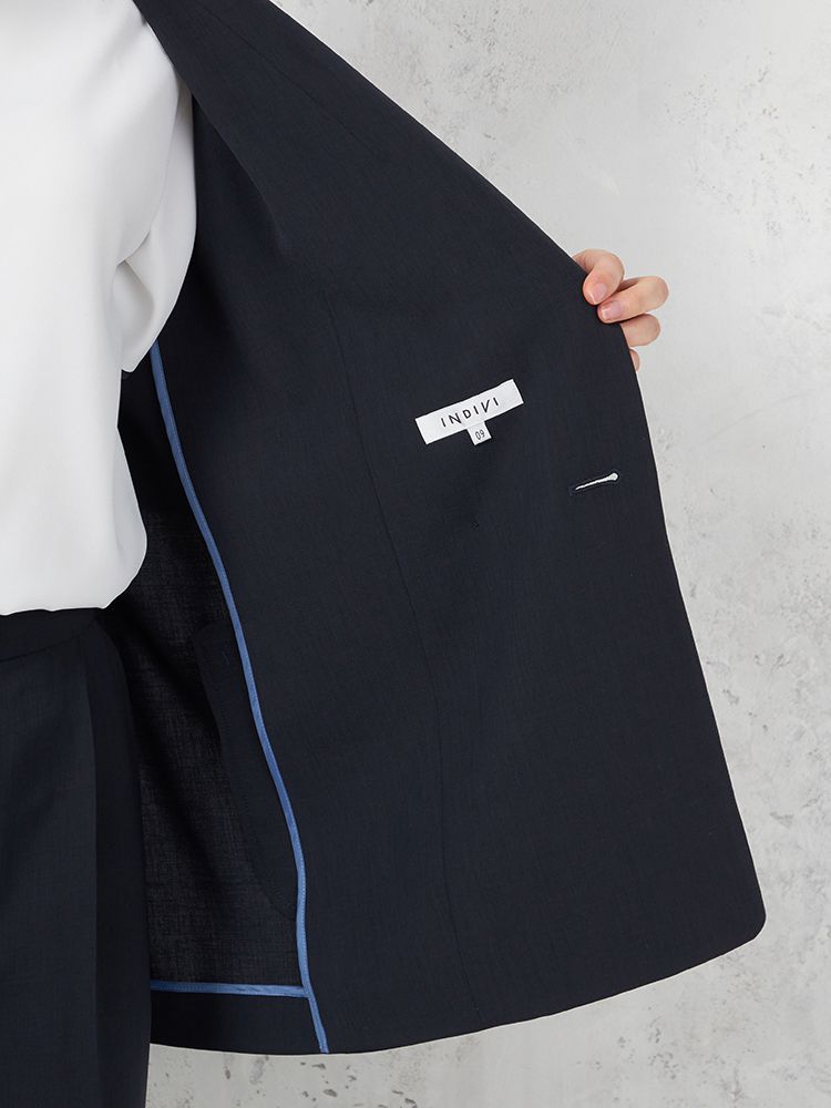 【INDIVI】ウォッシャブルノーカラージャケットダブルクロス無地通年【レディース】
