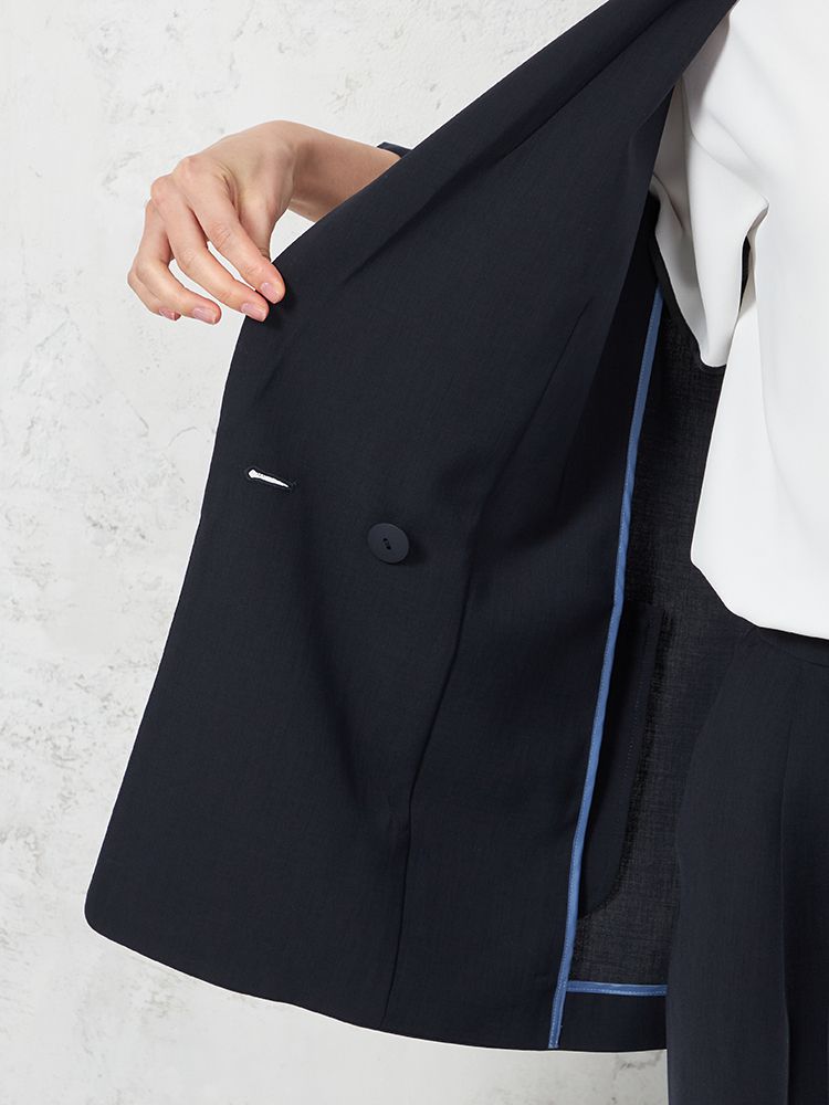ダブルブレストですが大きすぎない程よいサイジングなので、スタイルよく着こなして頂けます。