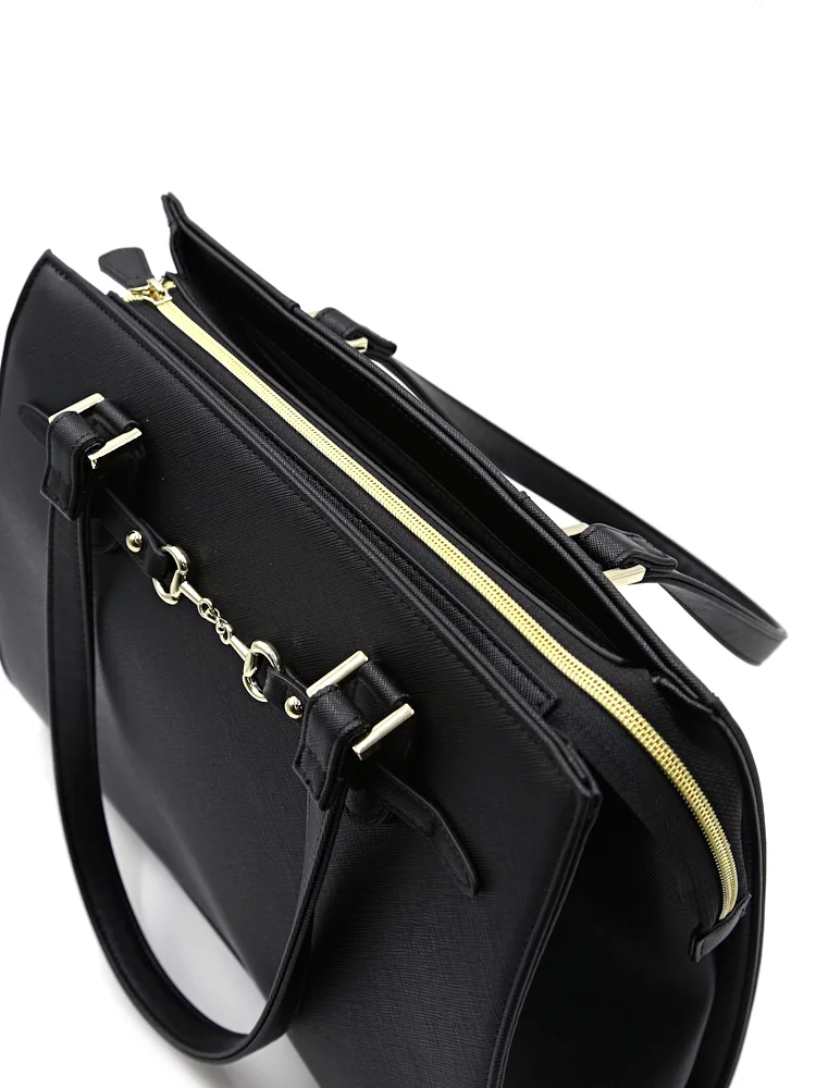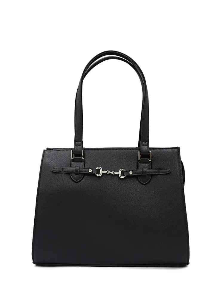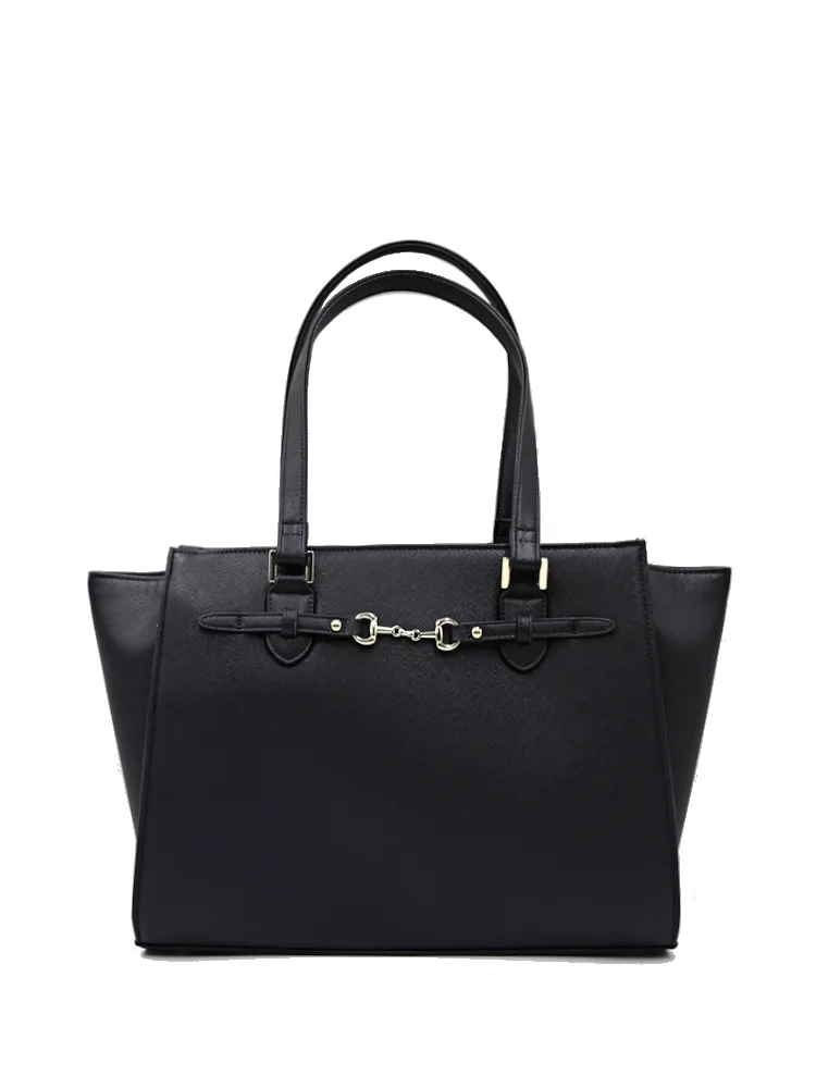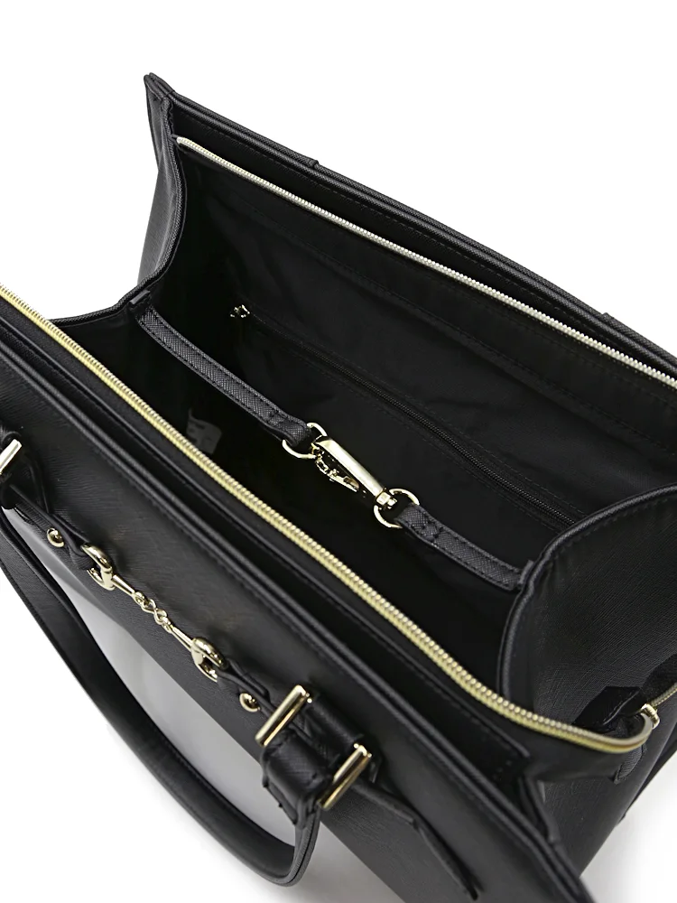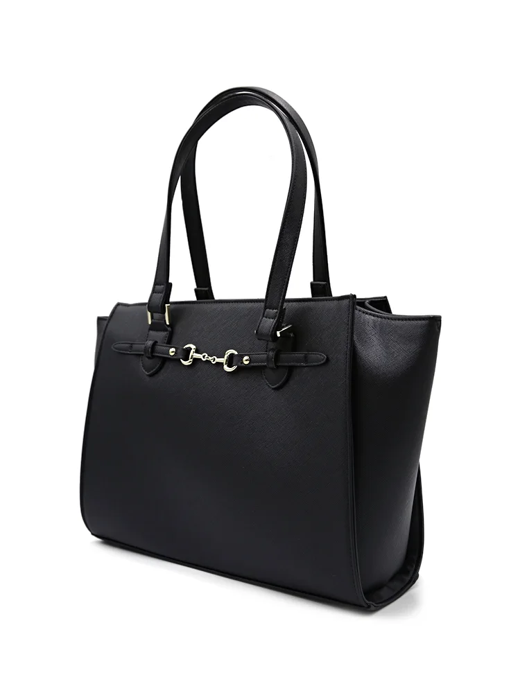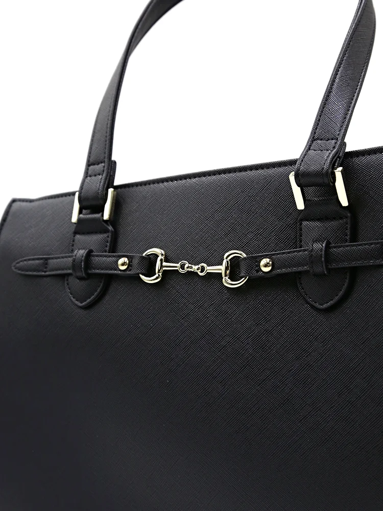 【2WAY】ビット金具付ベルトトートバッグ A4サイズ対応 収納ポケット充実 通年【レディース】(ブラック)