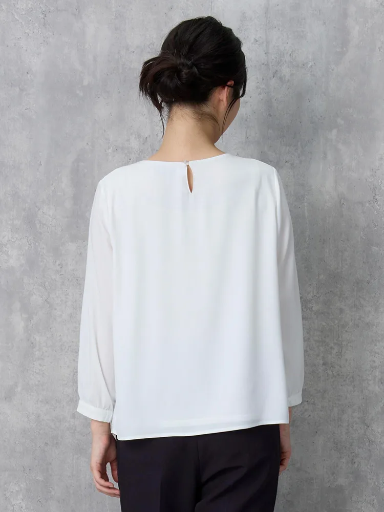 【イージーケア】ジョーゼット2枚重ね裾バルーンパールボタンブラウス9分袖透け軽減ウォッシャブルSOFFICE通年【レディース】