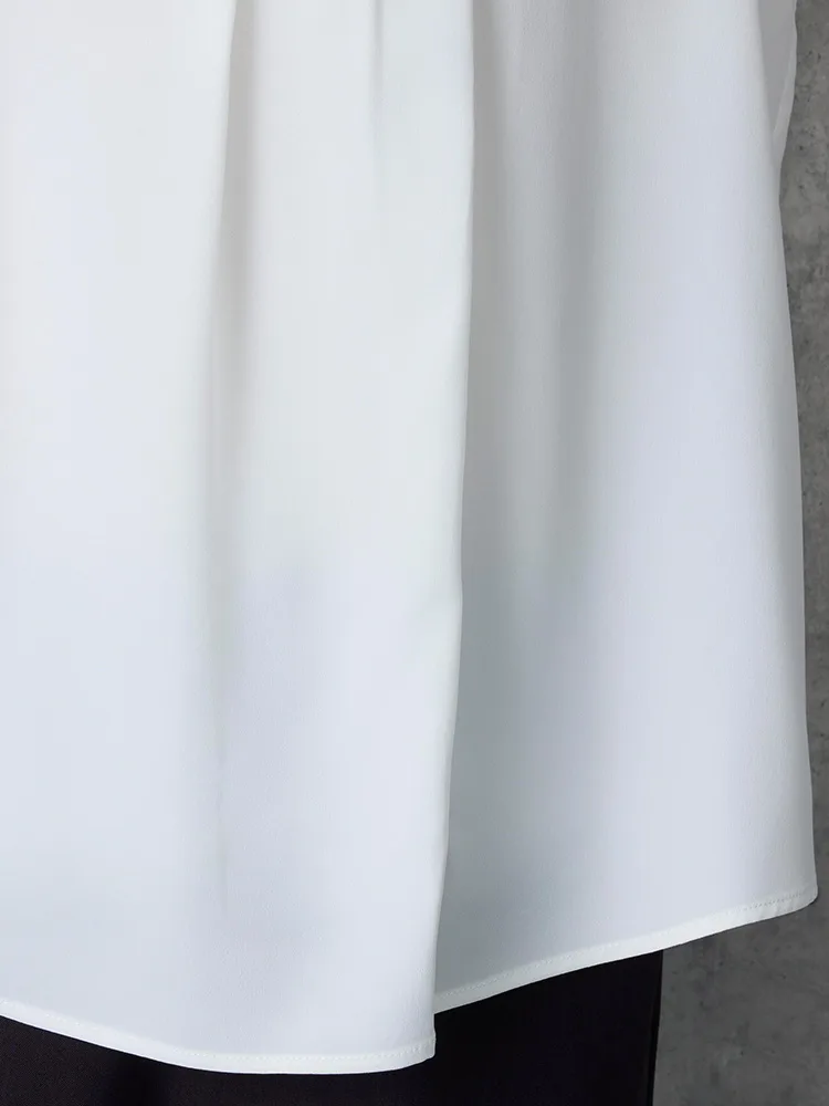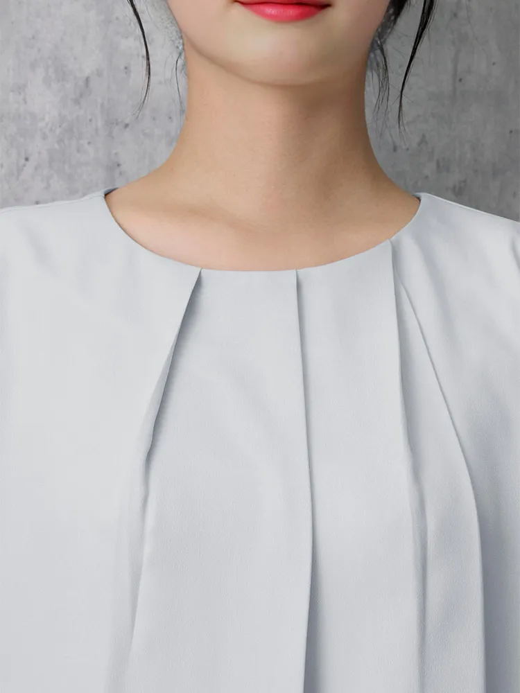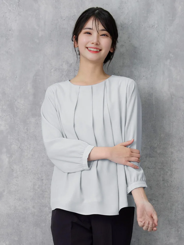 フロントタックディティールが上品な印象の7分袖ブラウス。
