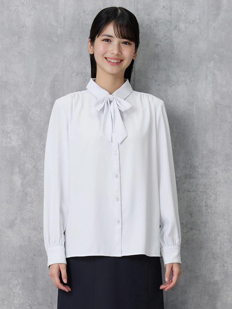 【2WAY】長袖ブラウス取り外しボウタイ付きレギュラーカラー形態安定透け防止織柄無地GraceField通年【レディース】