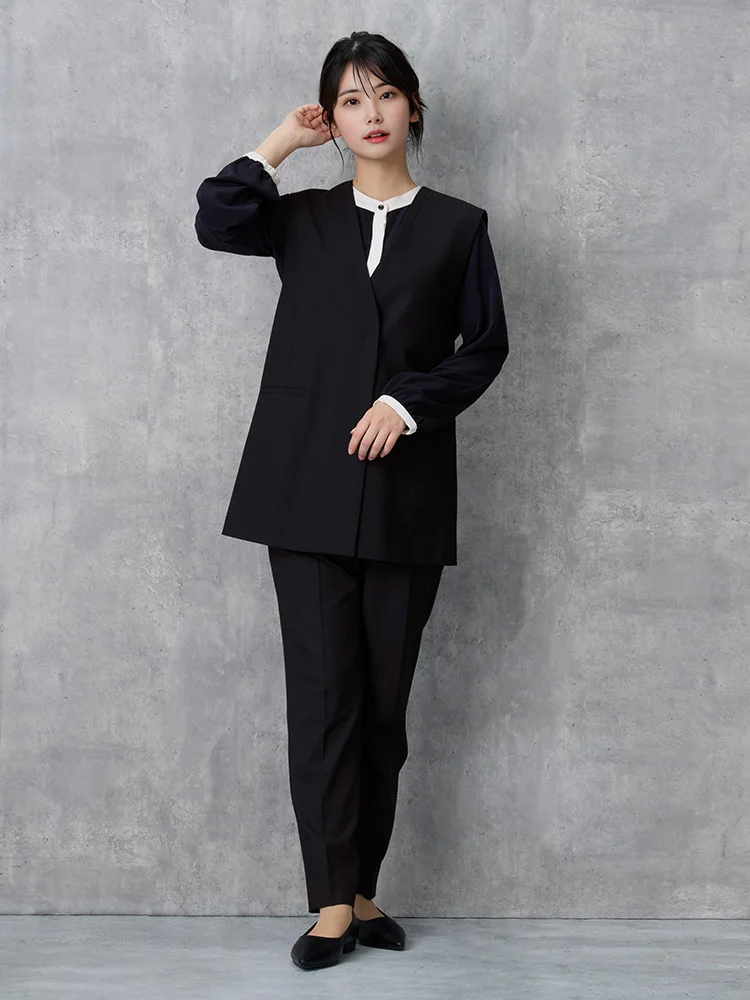 上下セットでコーディネートが簡単に決まるアイテム。シンプルでスタイリッシュな印象を与えます。