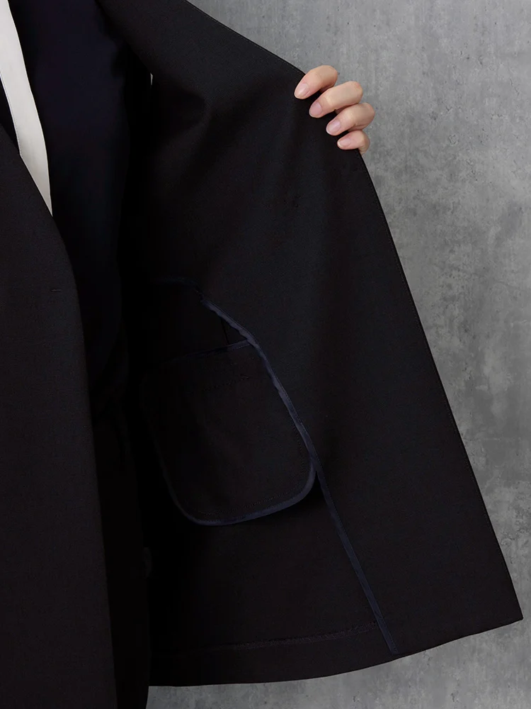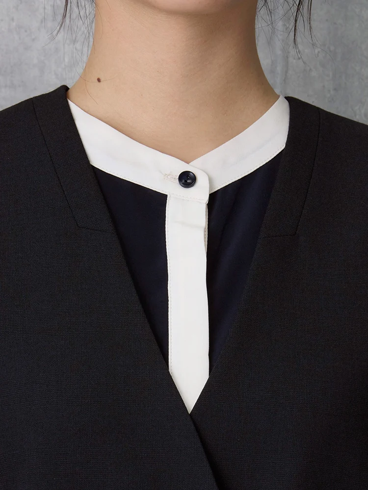 上品な光沢とポリエステル、レーヨン特有の滑らかさとストレッチ感を兼ね備えて、快適な着心地をもつ商品です。