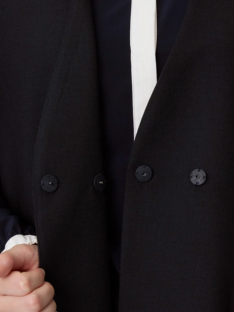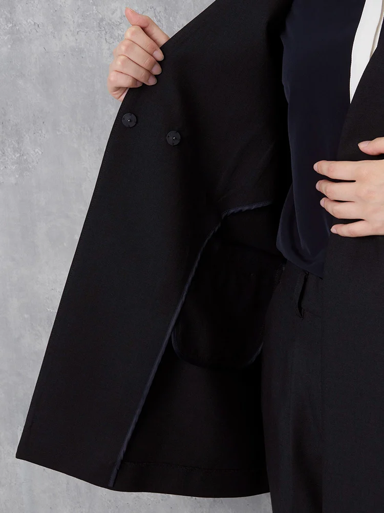 ポリエステル57%、レーヨン20%、毛17%、ポリウレタン6%