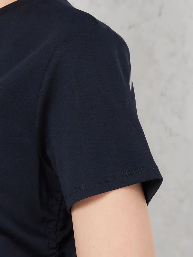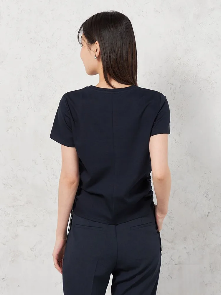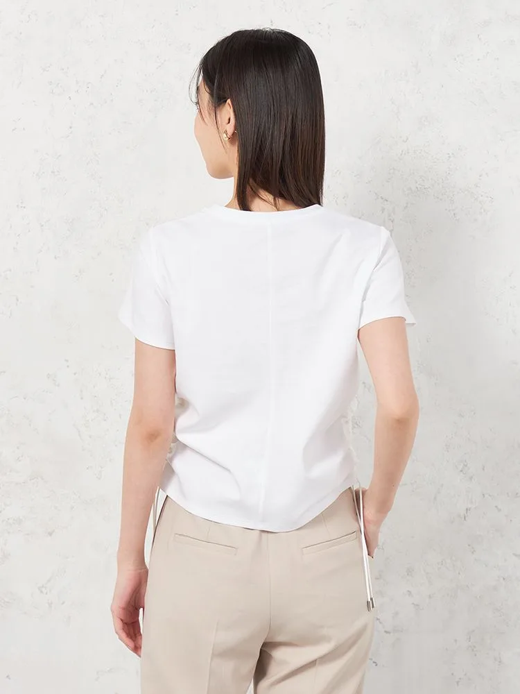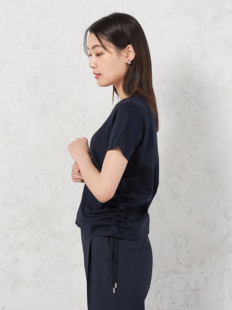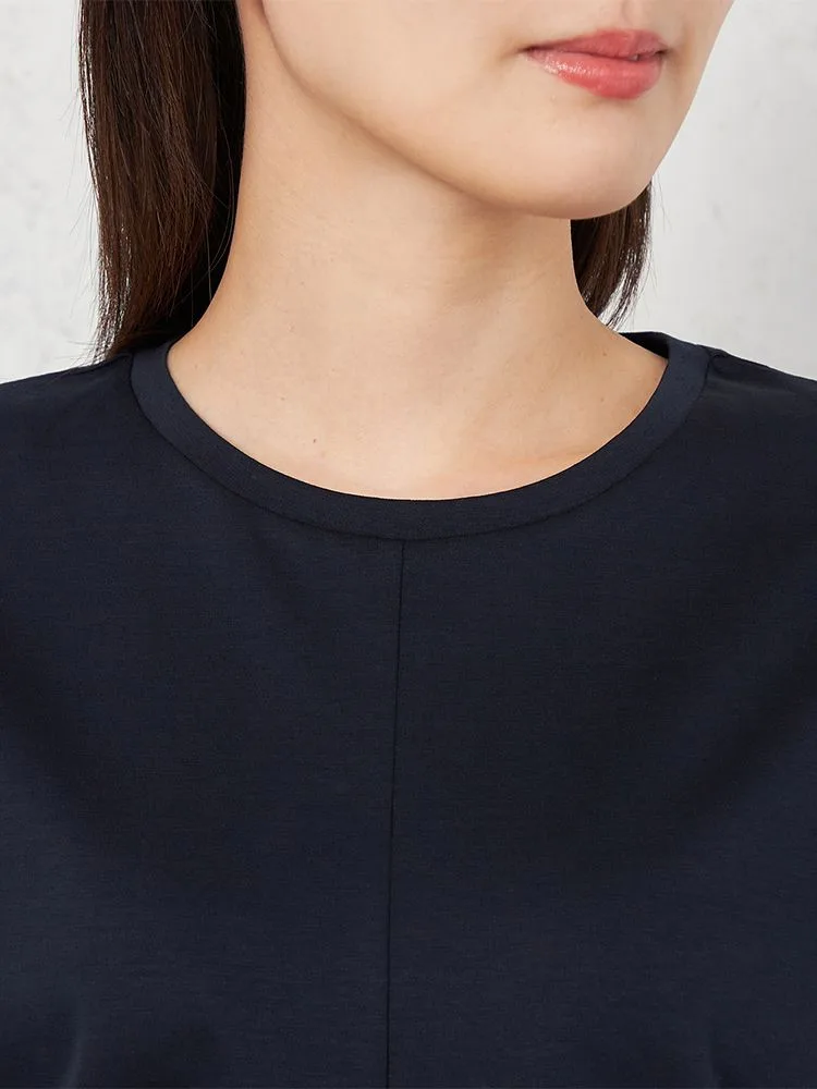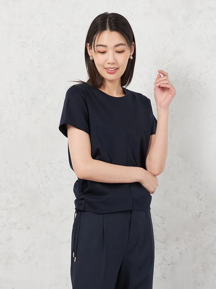 【INDIVI】シルケットポンチ 半袖 サイドドロストTシャツ 春夏【レディース】(ブラック)
