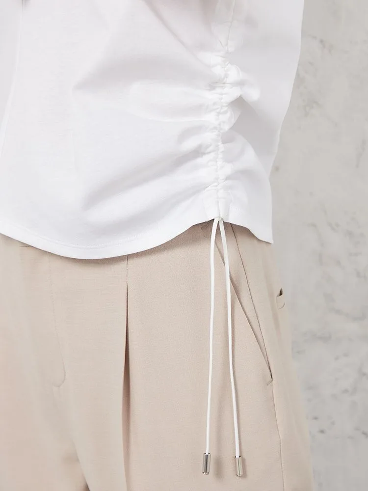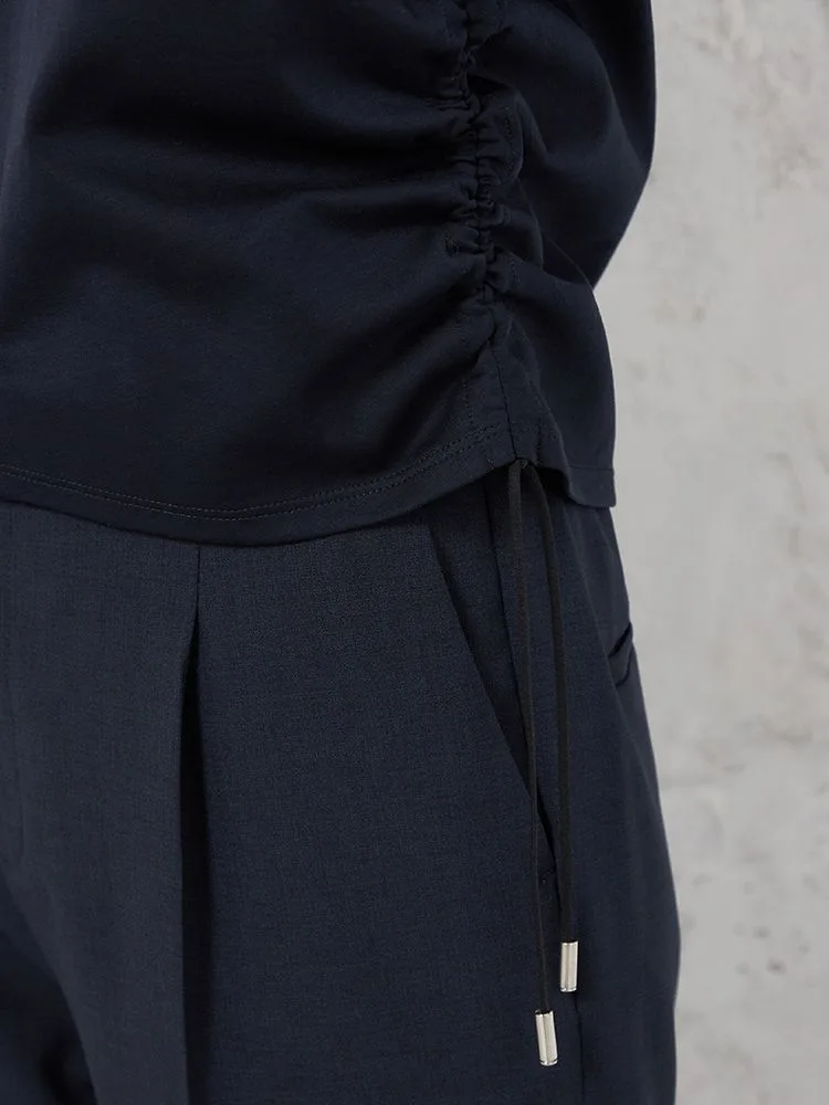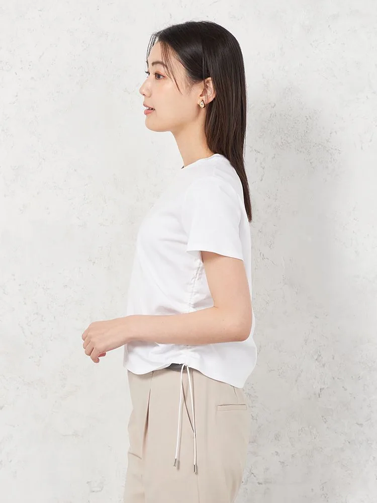 脇のドローストリングはお好みの絞り具合で調整していただけます。