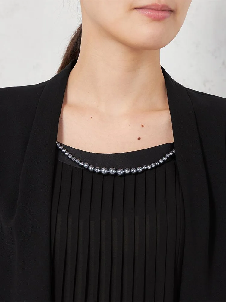 トップスはフロントファスナー仕様で脱着しやすく、パールネックレスも取り外し可能。