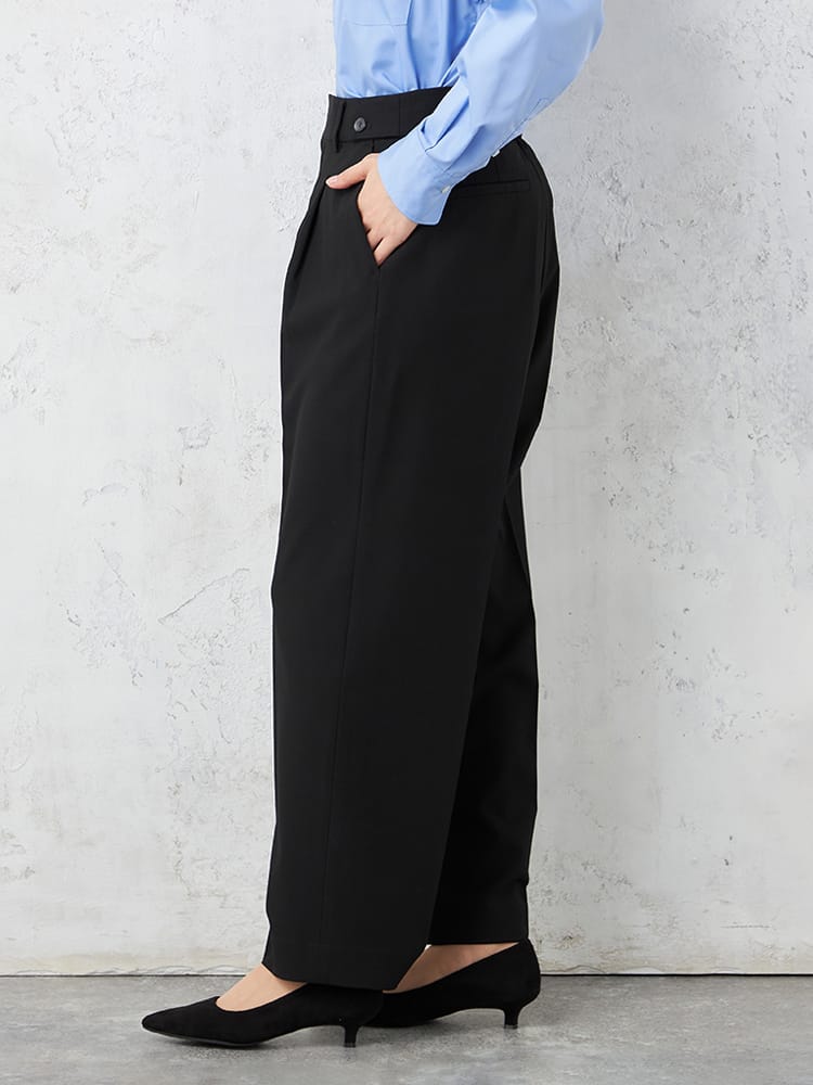 【WALKPLUS】 T/Rトロサイドタブワイドパンツ ウォッシャブル 通年 【レディース】(ブラック)