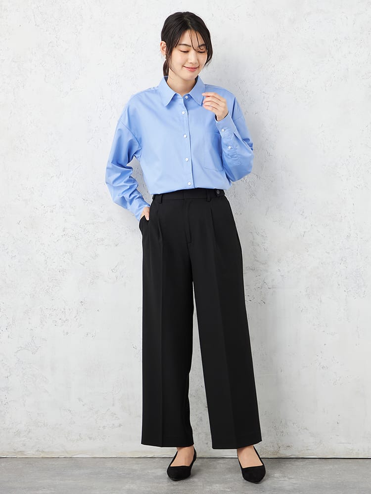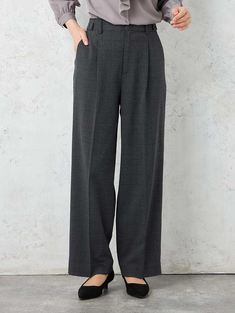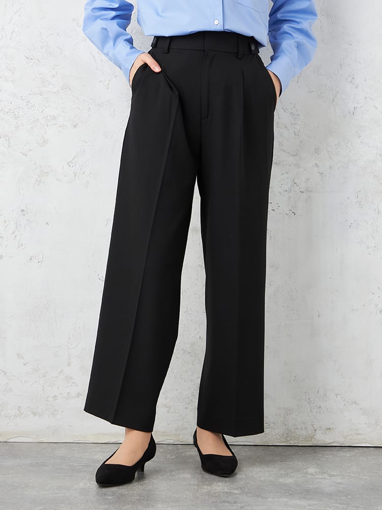 • ブラック 【WALKPLUS】 T/Rトロサイドタブワイドパンツ ウォッシャブル 通年 【レディース】 | はるやま公式通販