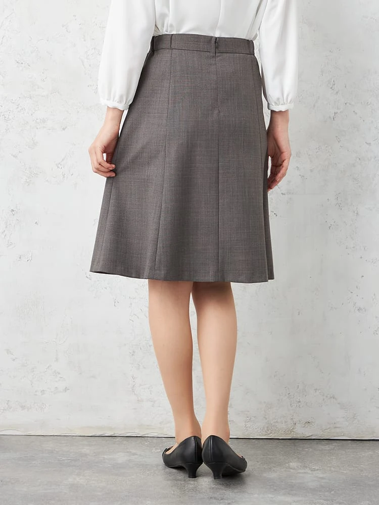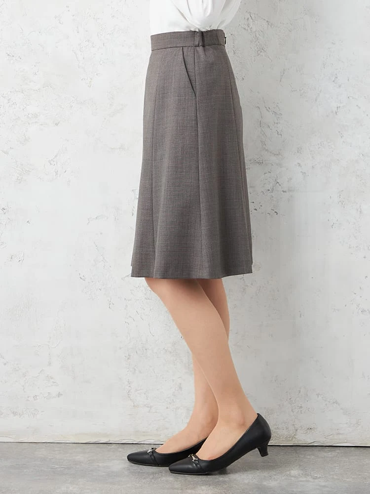 腰回りはすっきりとしたデザインで、膝が隠れる絶妙なスカート丈はジャケットとの相性も◎。