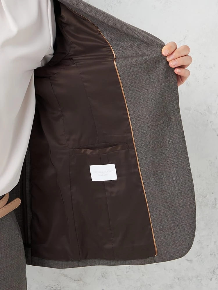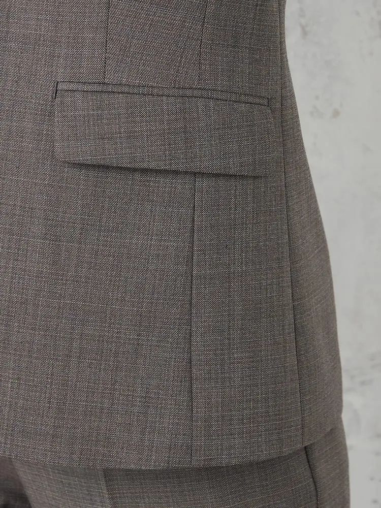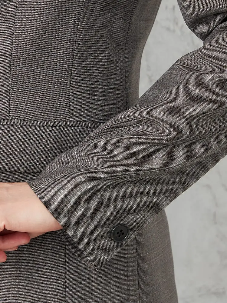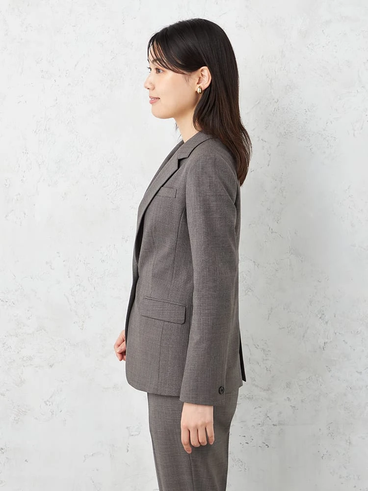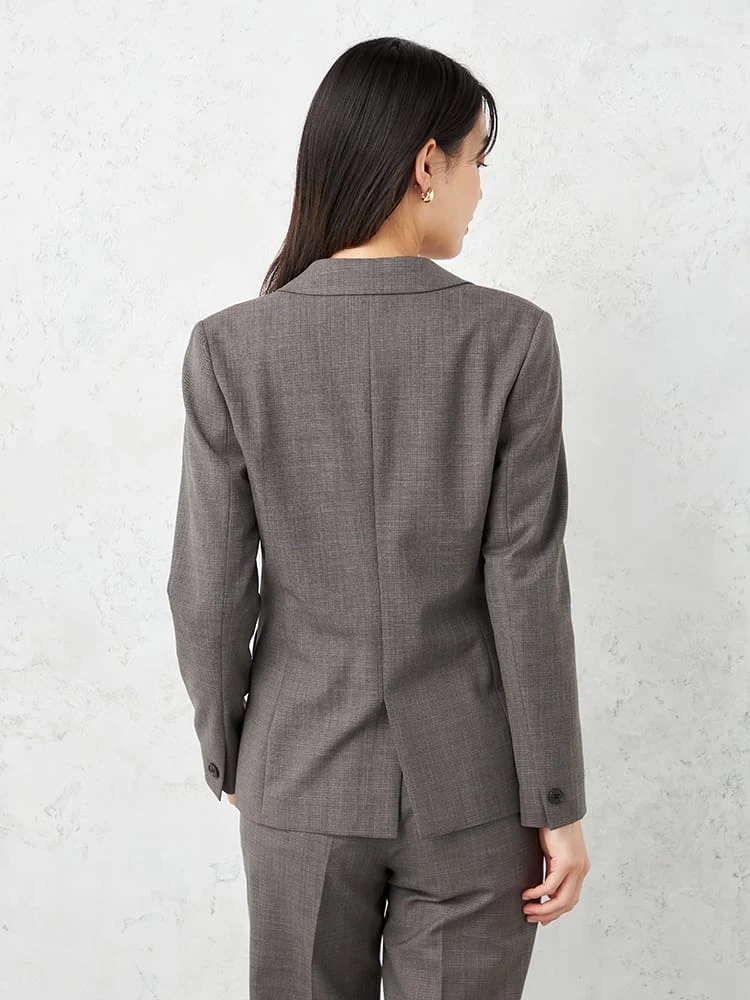 1つボタンのデザインで、シンプルかつスタイリッシュな印象を与えます。洗練されたシルエットが特徴です。