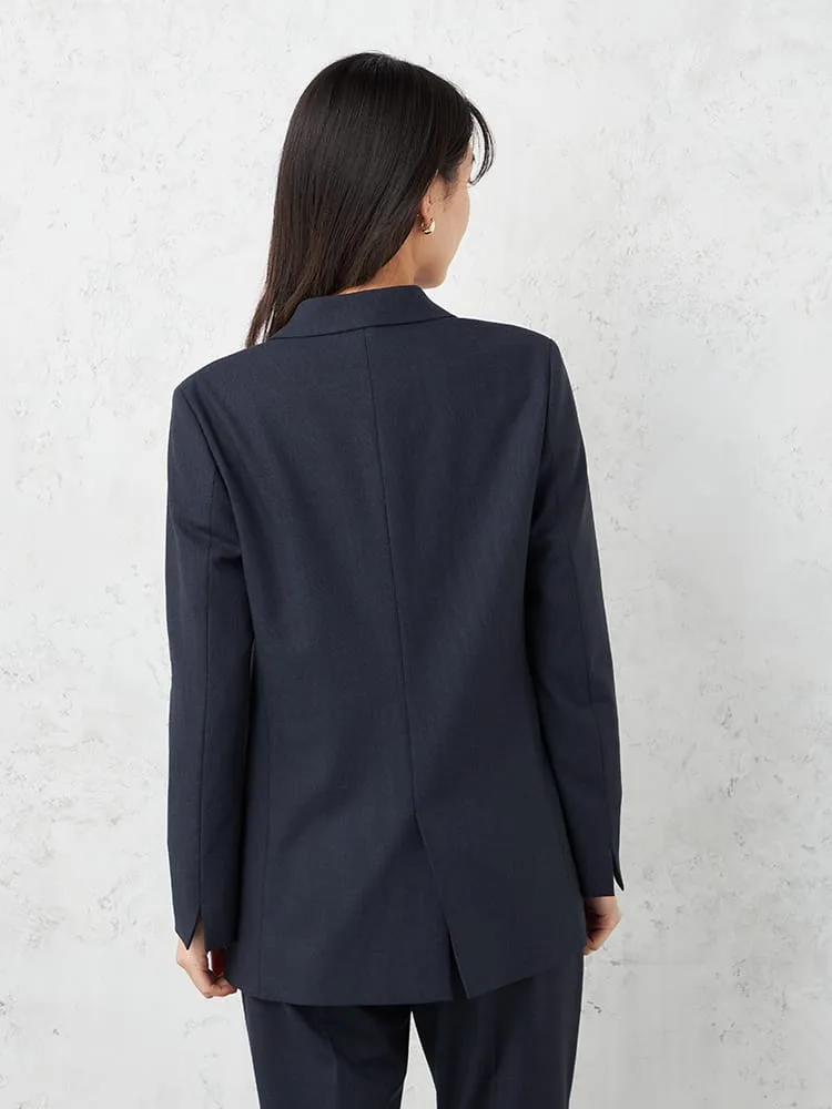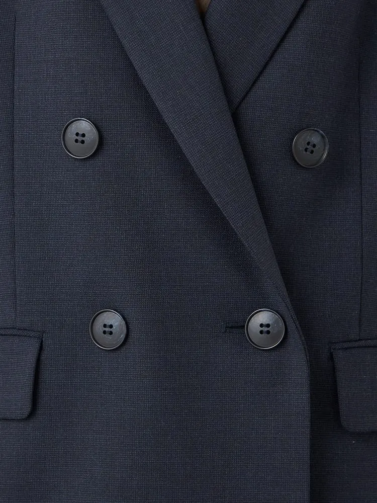 【INDIVI】 キャリーマンウール混ダブルジャケット チェック ウォッシャブル 秋冬 【レディース】(ネイビー)