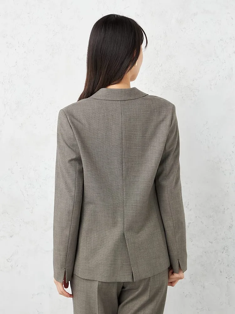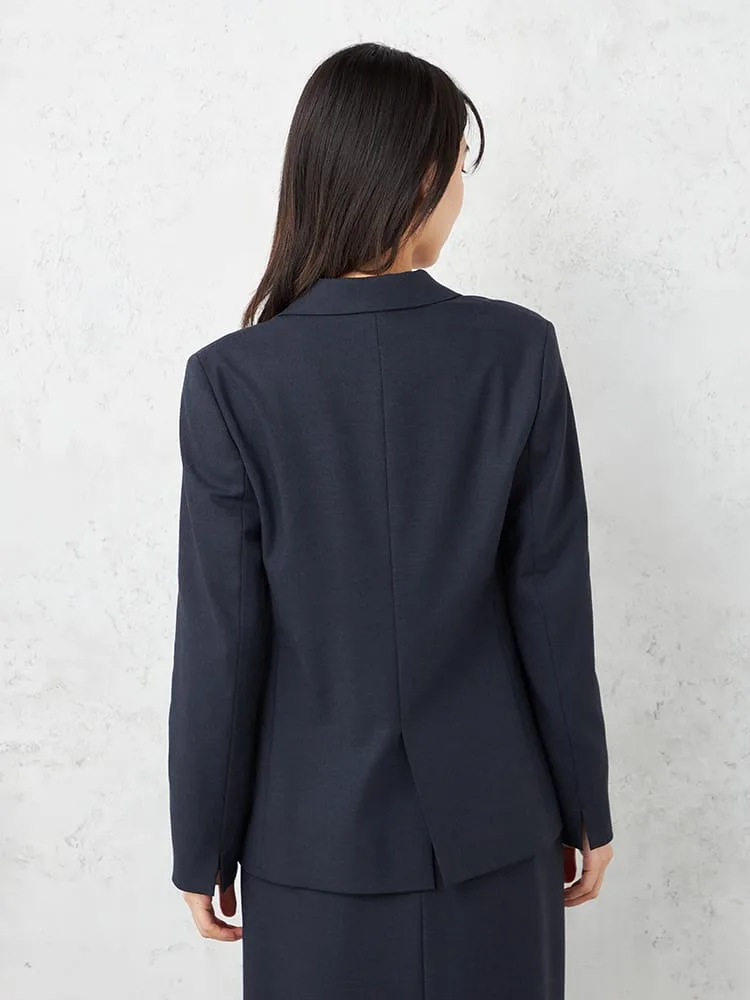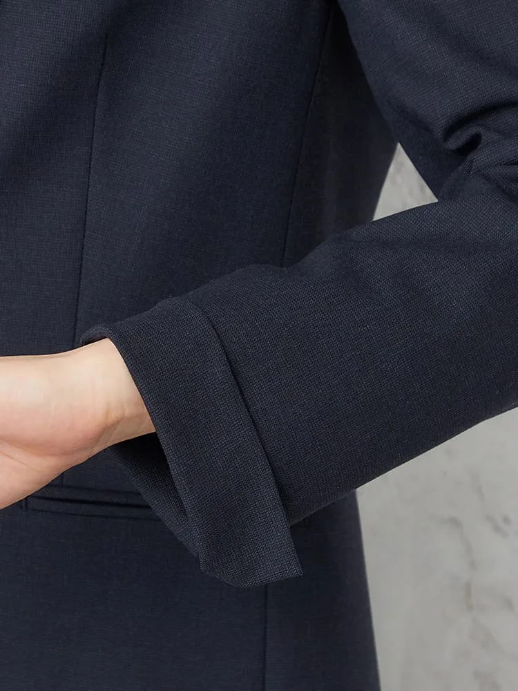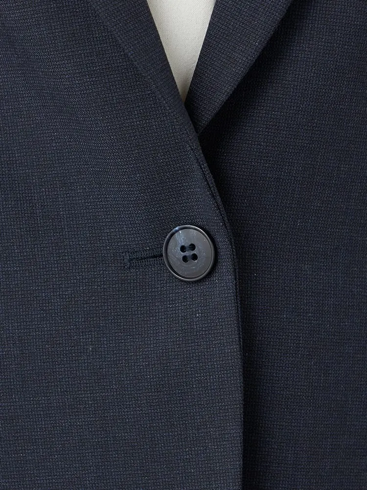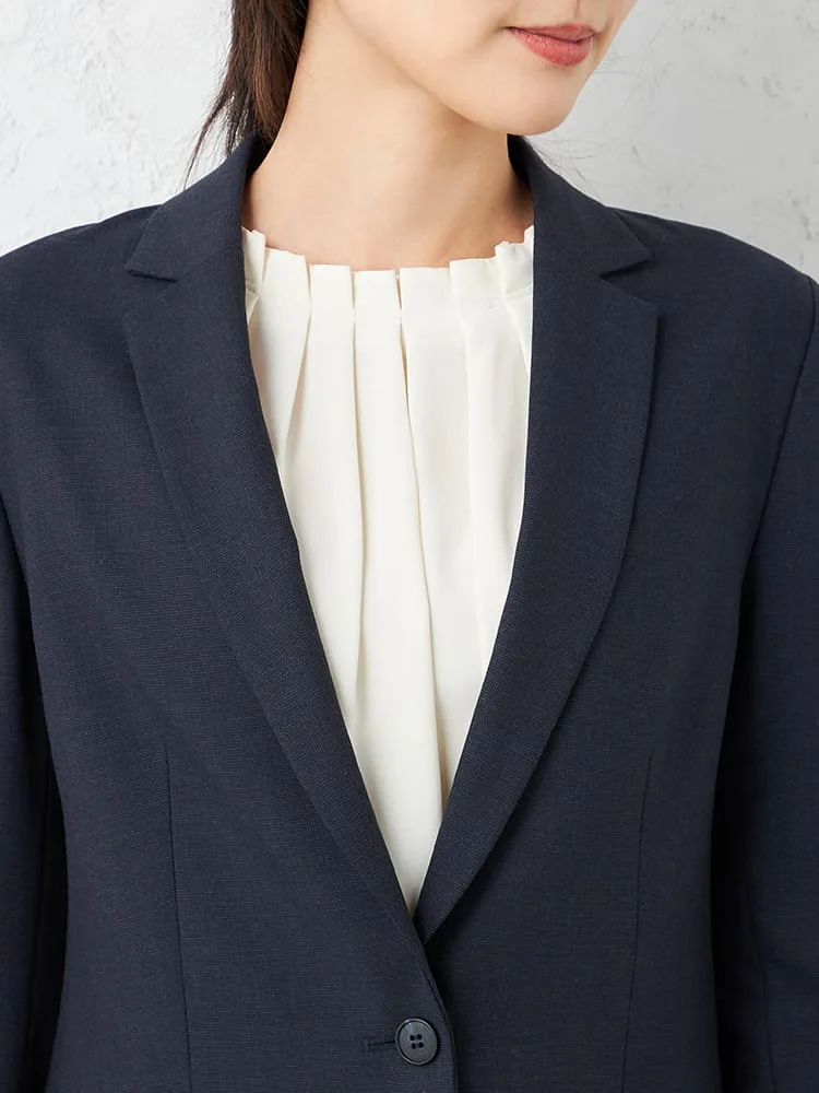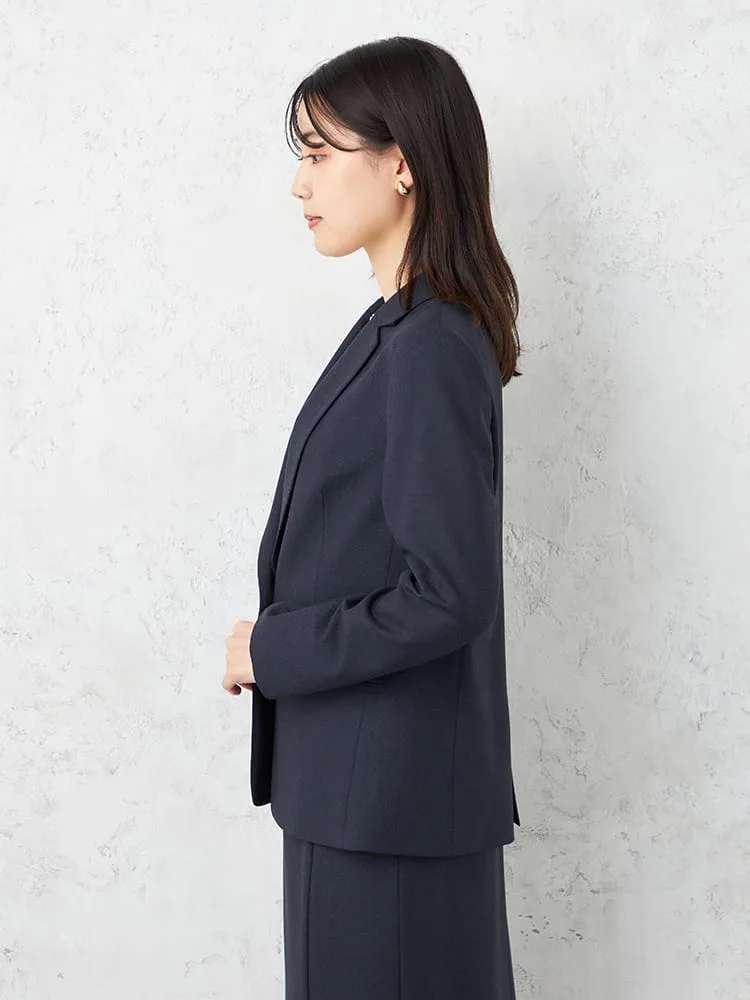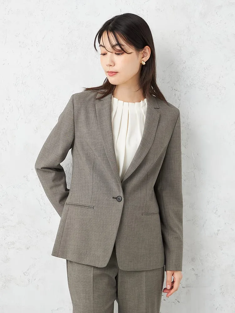 細身のテーラード衿がスタイリッシュな印象の1つ釦のテーラードジャケットです。