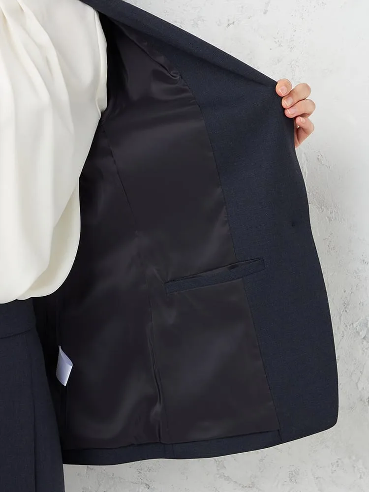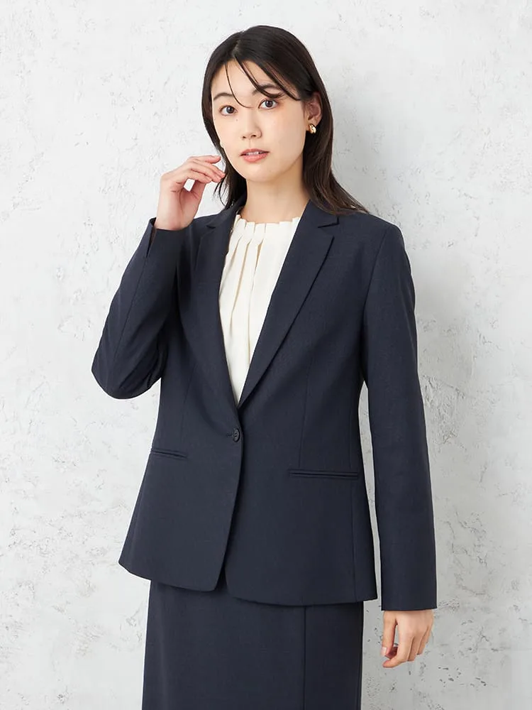 同素材のスカートやパンツと合わせたセットアップスタイルは、学校行事や通勤用として幅広く活躍すること間違いなし!