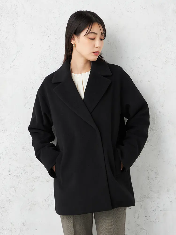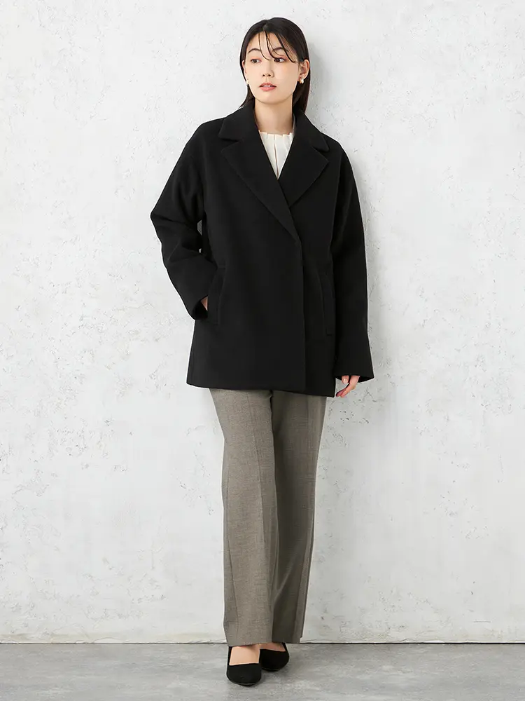 シンプル&スタンダードなデザインで着回し力抜群のショート丈コートです。