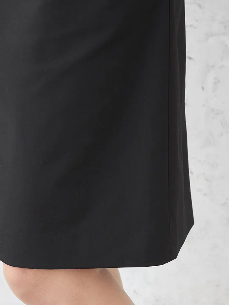 腰回りをすっきり見せるダーツ仕様と、膝が隠れる絶妙な丈感が、上品でスタイリッシュな印象を与えます。
