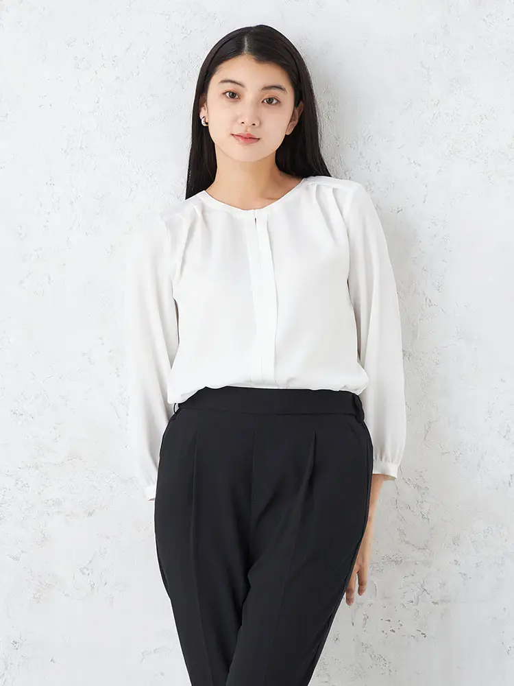 オフィスからセレモニーまで幅広く活躍する、7分袖の正統派ブラウス。