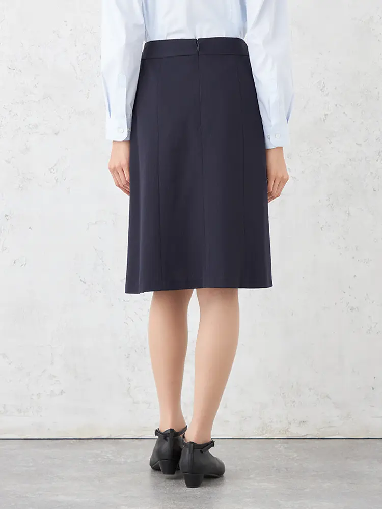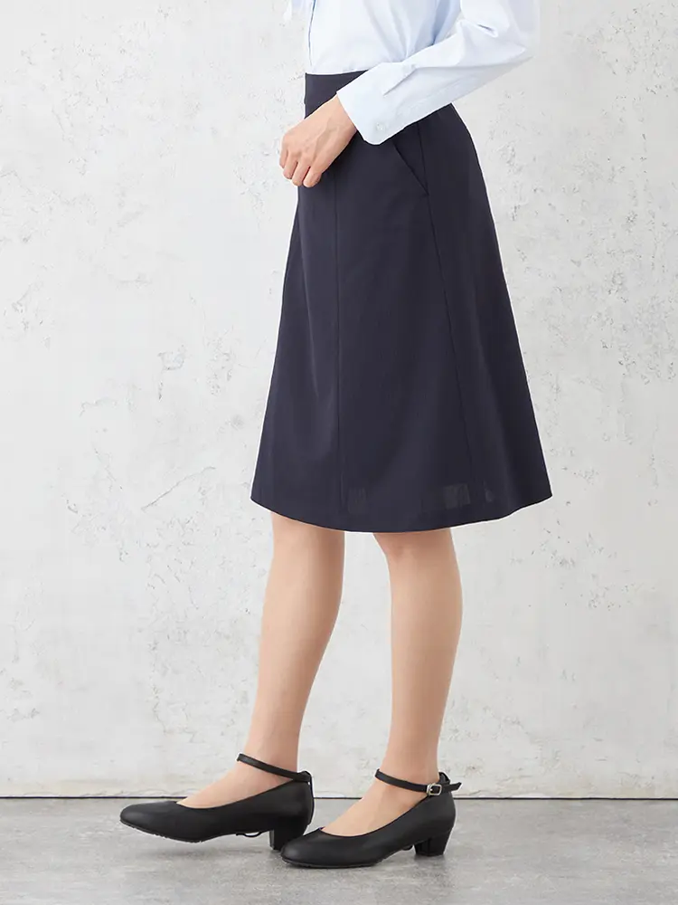 広がりすぎない上品なセミフレアシルエットで、甘さを抑えた洗練された着こなしが叶います。