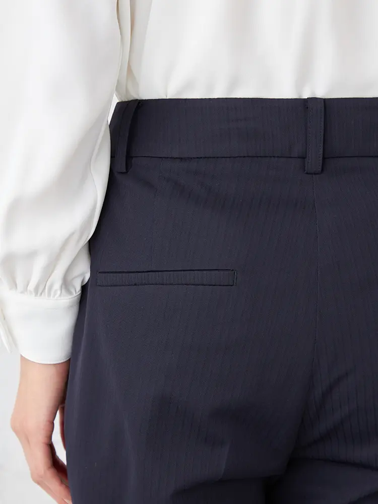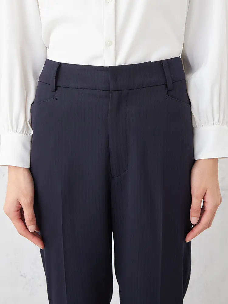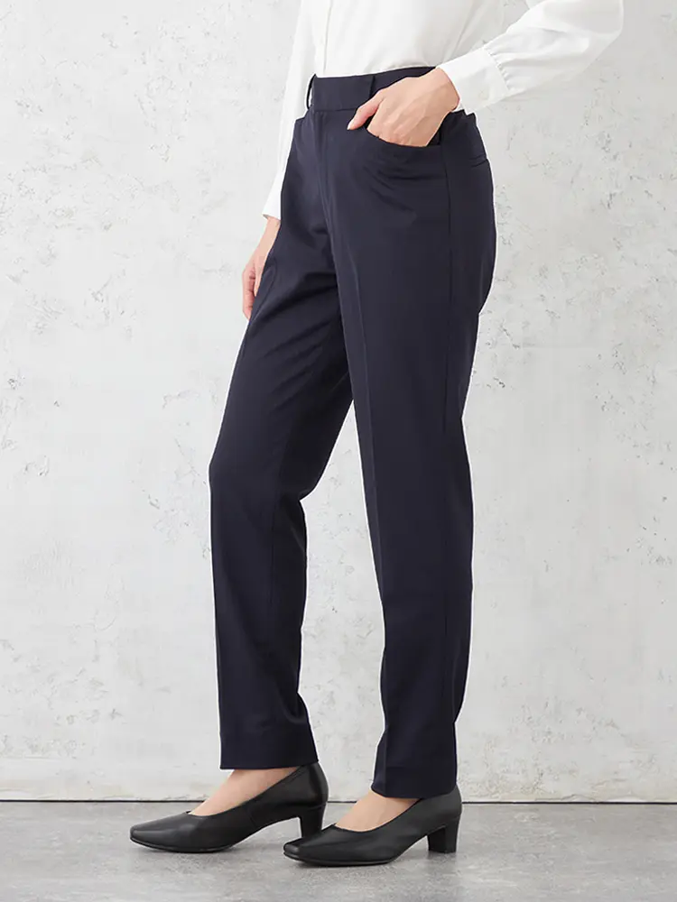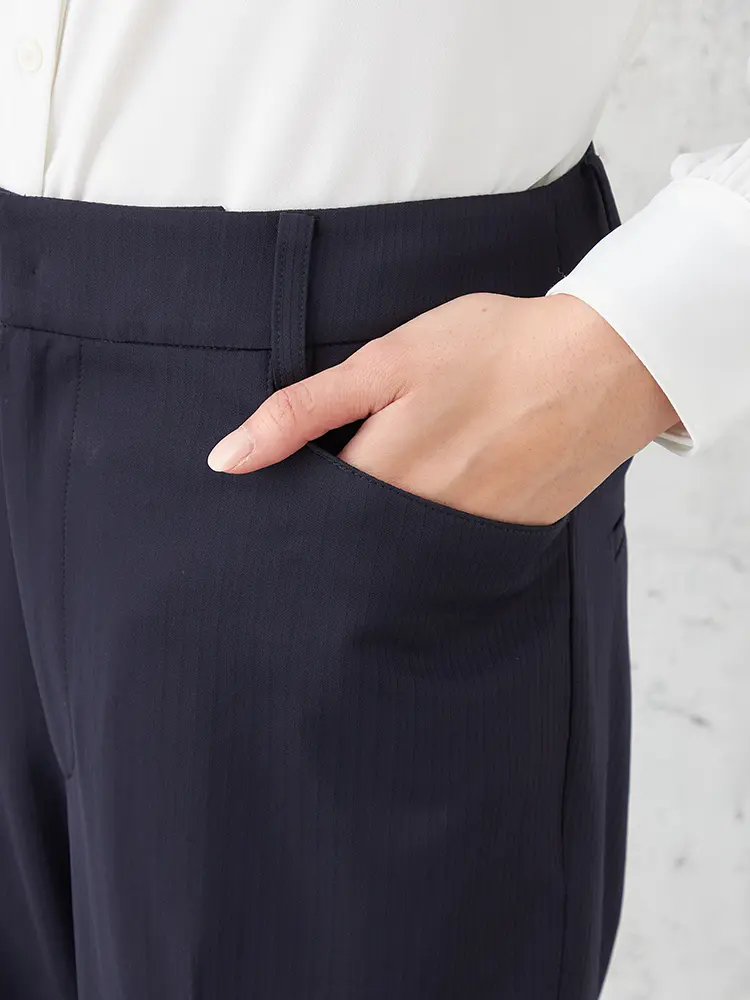 • 【ViVi】 ネイビーニットウォッシャブルテーパードパンツ フルレン シャドウストライプ ノータック 通年 | はるやま公式通販
