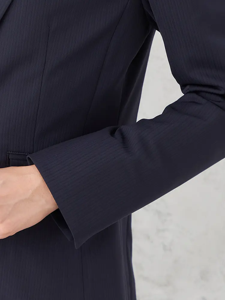 背抜き仕立てとセンターベント仕様で動きやすく、快適な着心地を実現。