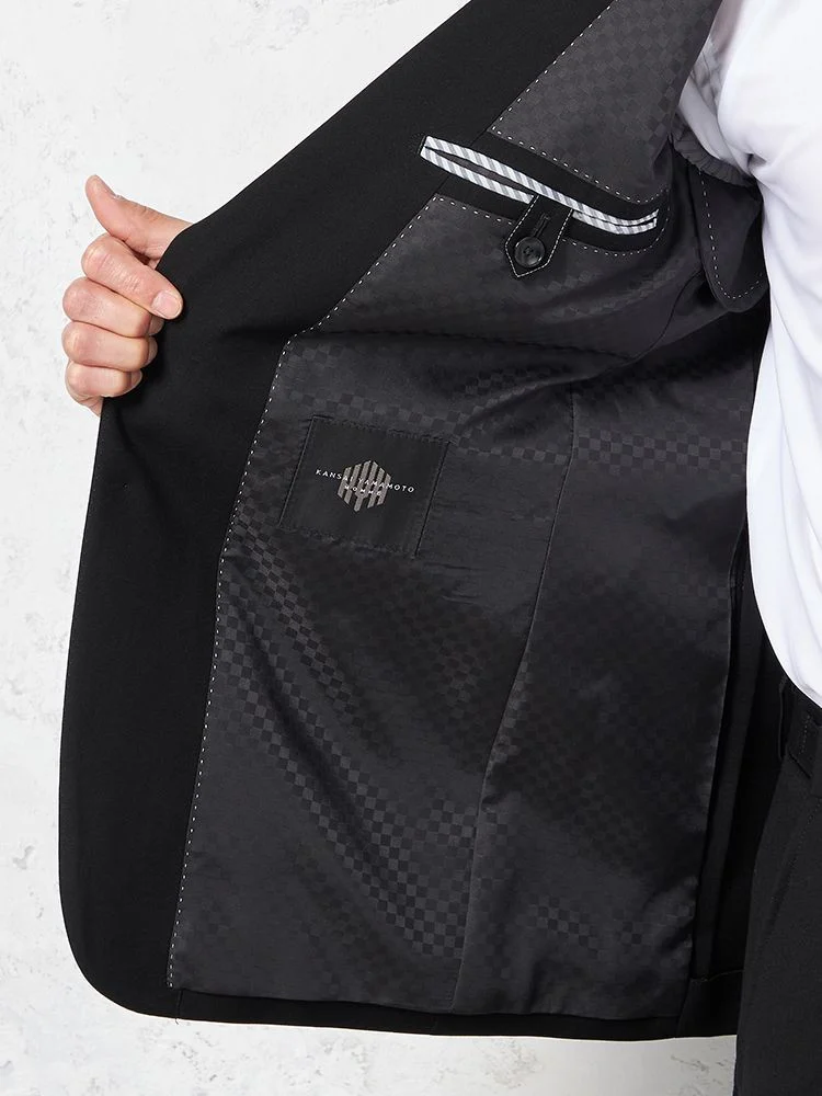 [礼服]【ウエストアジャスター仕様】フォーマル2つボタンウール混黒無地カンサイ・ヤマモト通年礼服【定番】