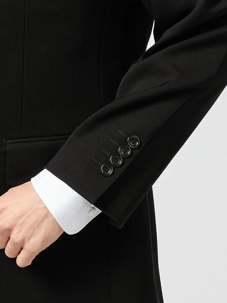 [礼服]【ウエストアジャスター仕様】フォーマル2つボタンウール混黒無地カンサイ・ヤマモト通年礼服【定番】