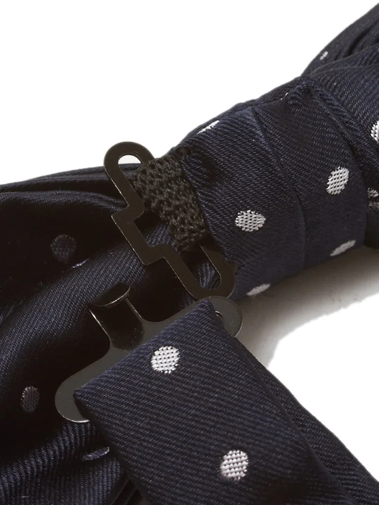 レッド系カラーのベースに、ホワイトのドット柄をあしらった蝶ネクタイ。
