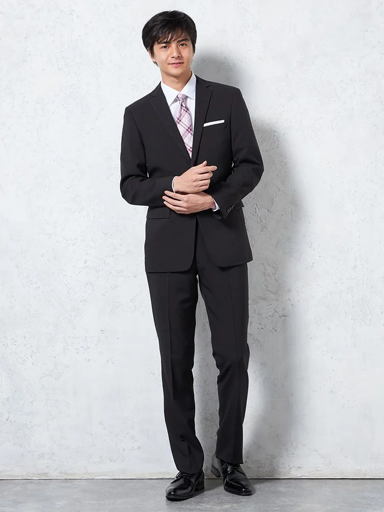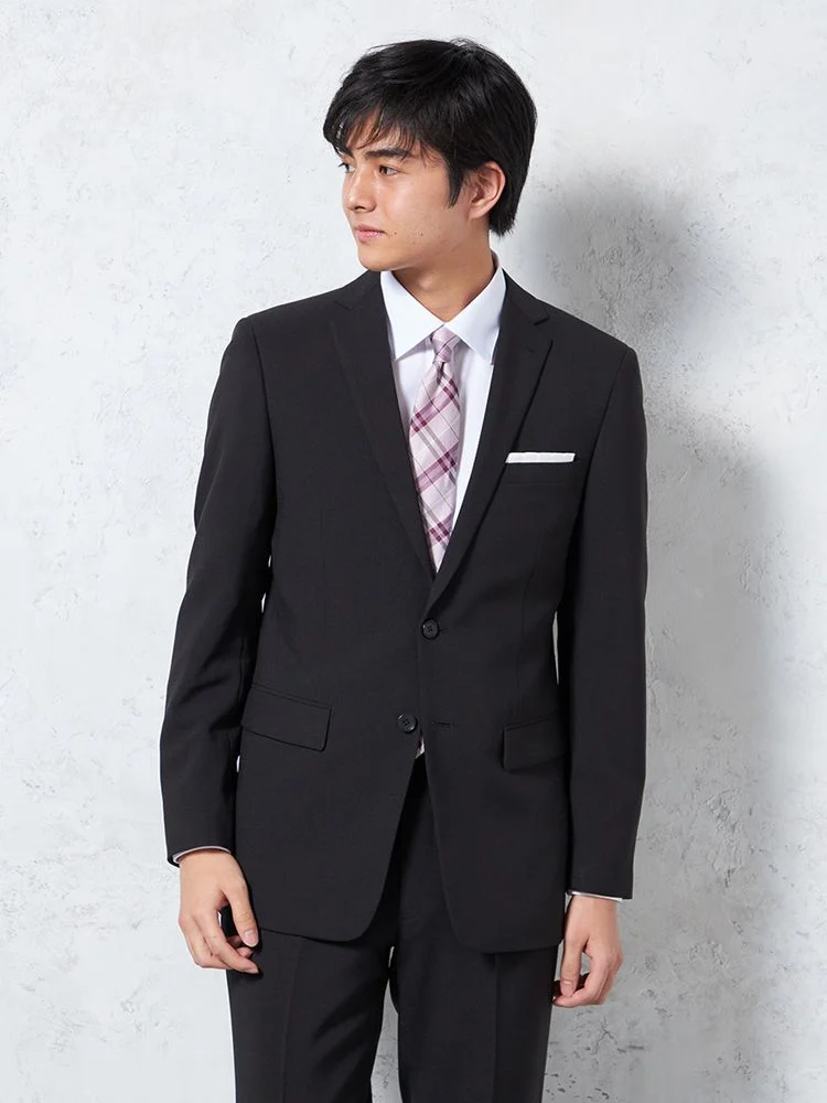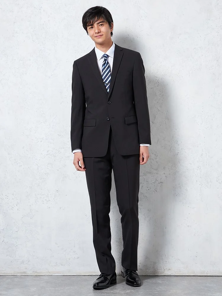 【上下ウォッシャブル】スーツ2つボタンツーパンツブラック無地脚長スリムリクルート/就活対応RESPECTNERO通年【定番】【スリムデザイン】