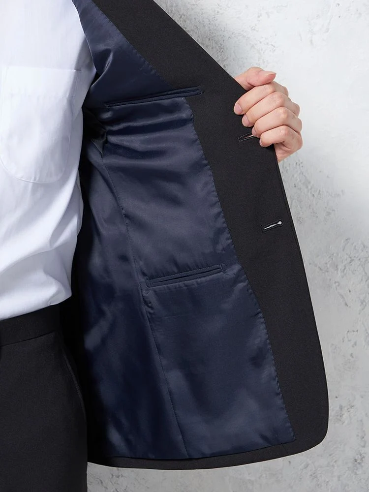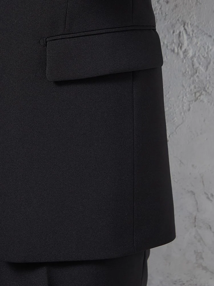 切り込みが1本のセンターベントデザインです。細身でスッキリとしたシルエットが特徴で、快適な着心地を提供します