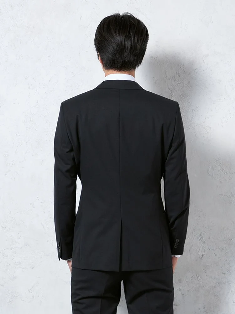 切り込みが1本のセンターベントデザインです。細身でスッキリとしたシルエットが特徴で、快適な着心地を提供します