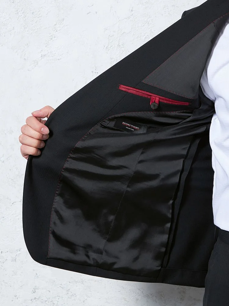 【2WAYストレッチ】2つボタン スーツ ブラック シャドウストライプ【ベスト(別売)有】RESPECT NERO 通年【定番】【スリムデザイン】