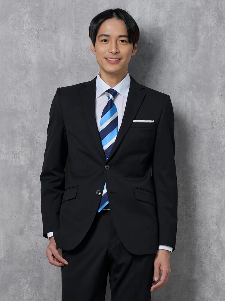 【即納】スーツ2つボタン【WEB限定】上下ウォッシャブルネイビーストライプ