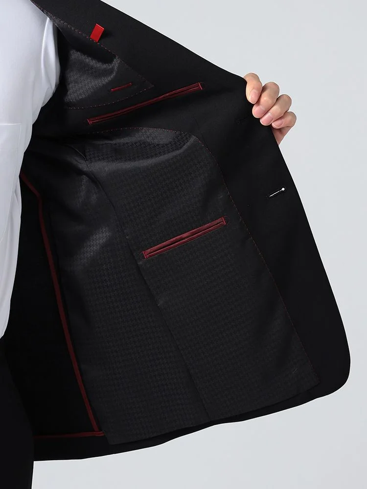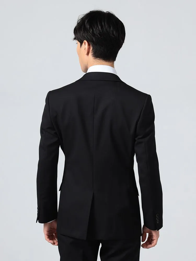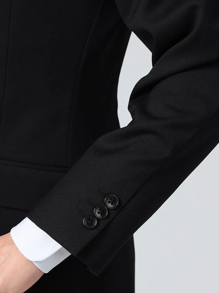 あらゆるシーンに対応する、ブラックのベーシックな2つボタンスーツです。