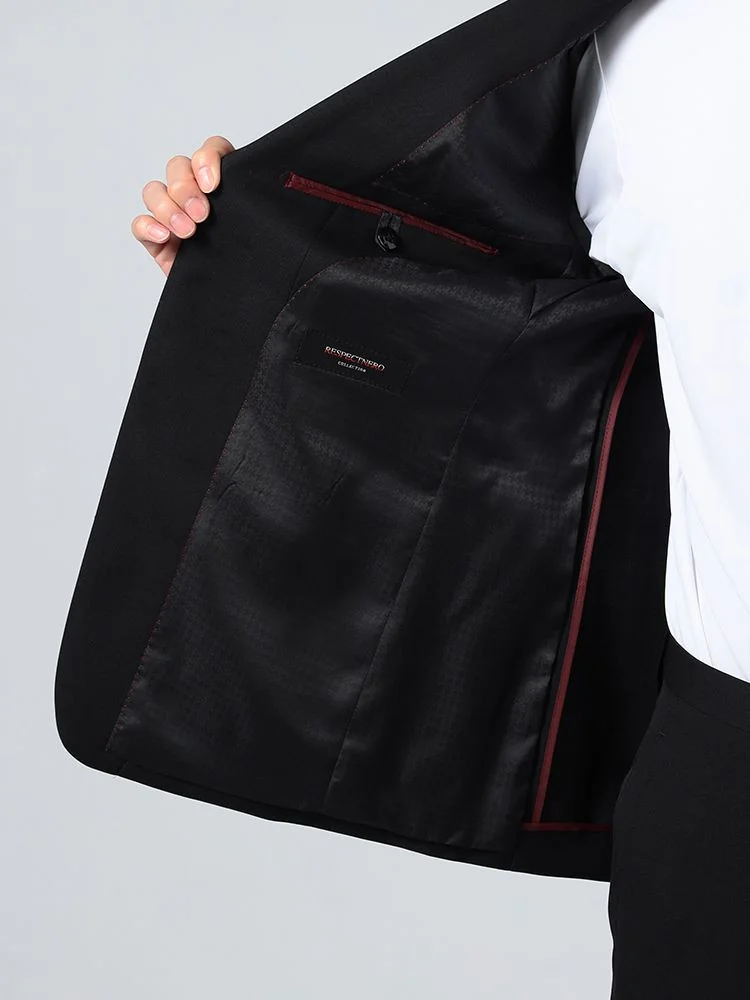 【上下ウォッシャブル】スーツ2つボタンツーパンツブラック無地脚長スリムリクルート/就活対応RESPECTNERO通年【定番】【スリムデザイン】
