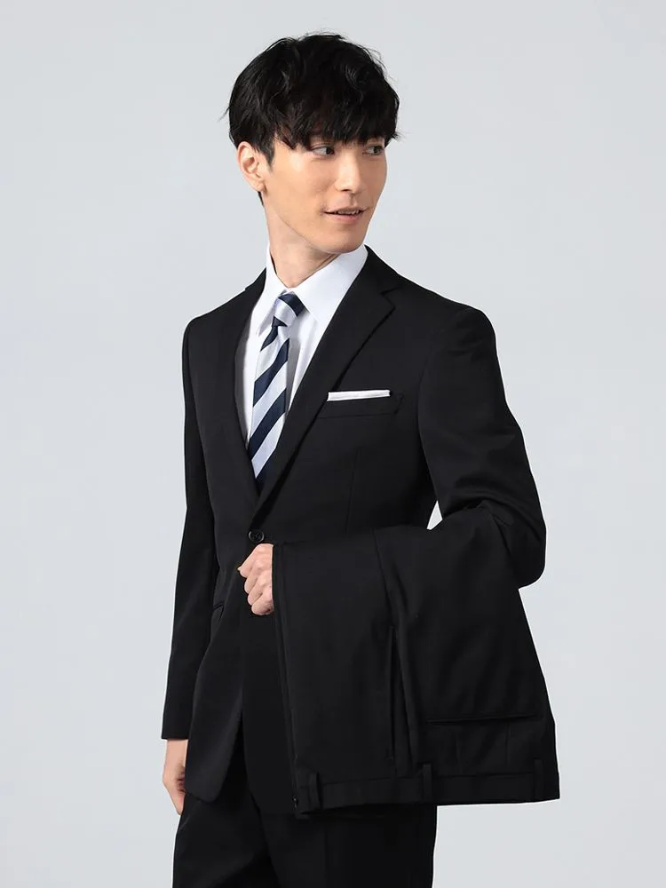 【即納】スリーピーススーツ2つボタン【WEB限定】上下ウォッシャブルブラックシャドウストライプ3シーズン対応