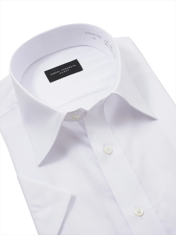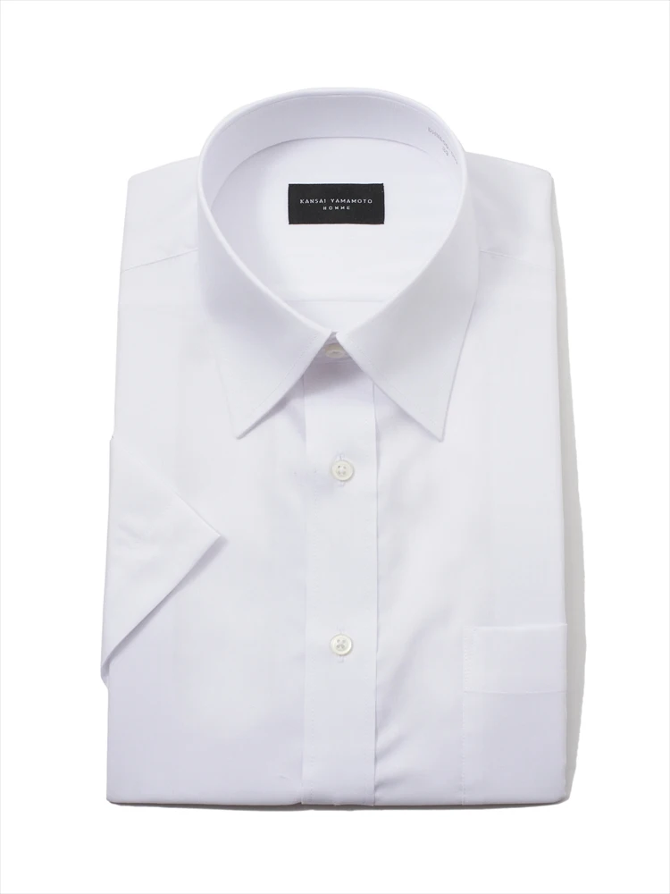 【形態安定】半袖ワイシャツ 高通気 白無地 カンサイ・ヤマモト 春夏