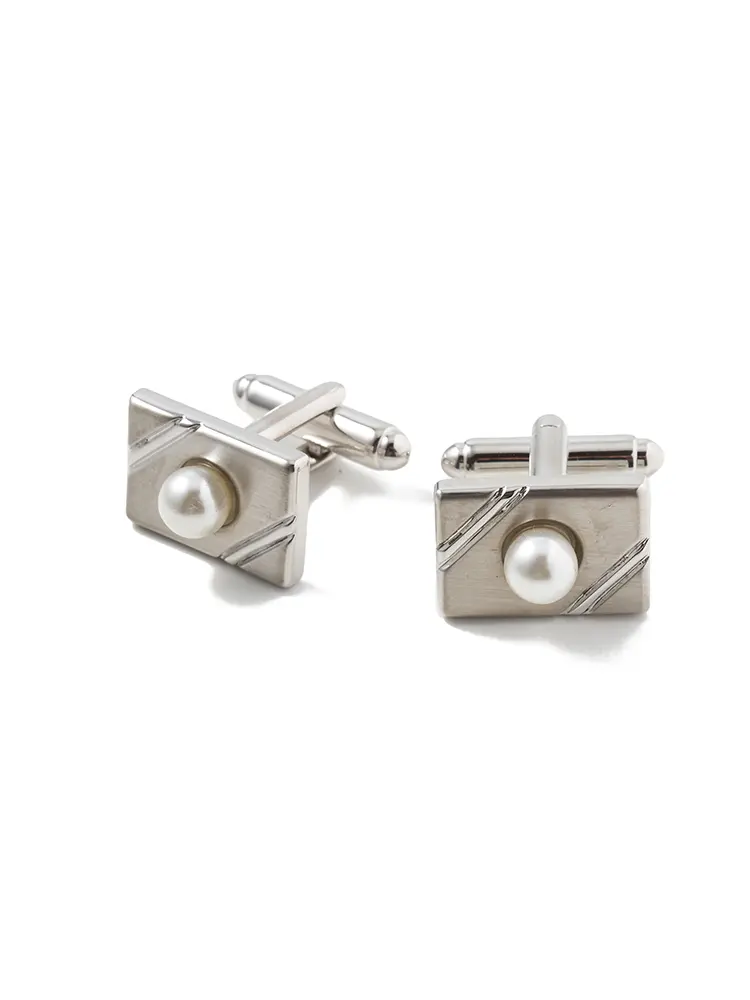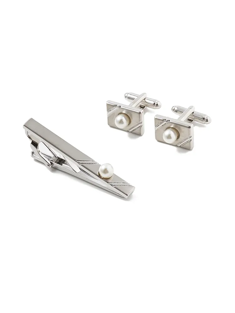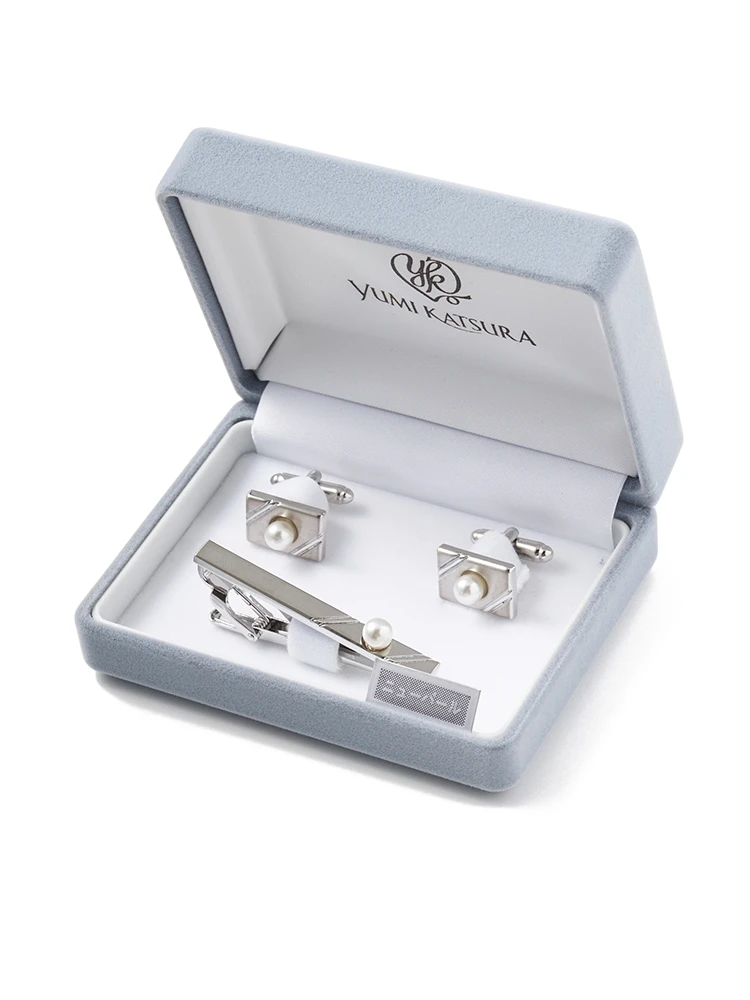 世界的デザイナー「桂由美」ブランドのニューパールを使用したタイピン&カフスセット。