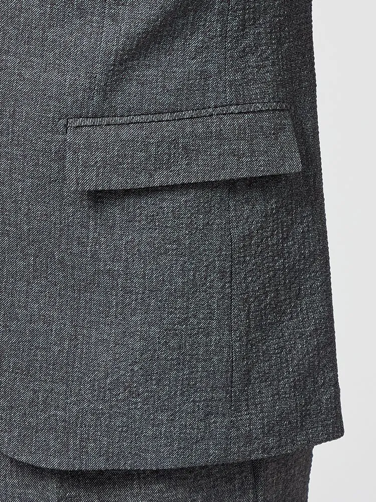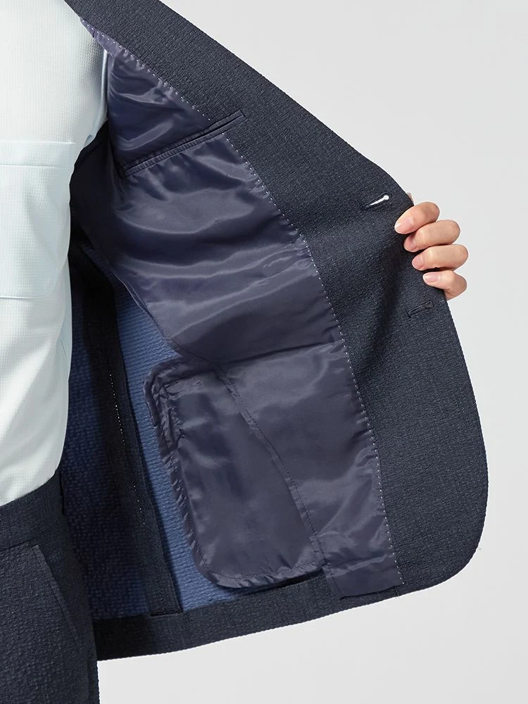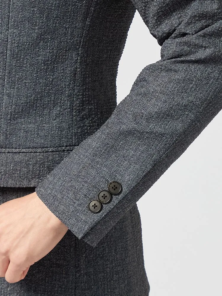 切り込みが1本のセンターベントデザインです。細身でスッキリとしたシルエットが特徴で、快適な着心地を提供します