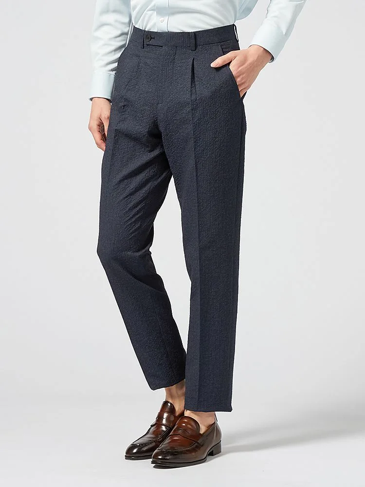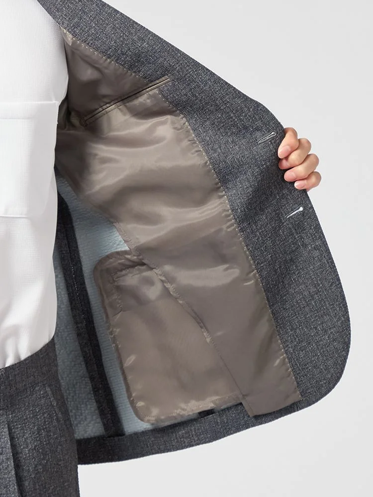 独特の風合いの生地が、ビジネススタイルにさりげないセンスをオンしてくれるスーツ。