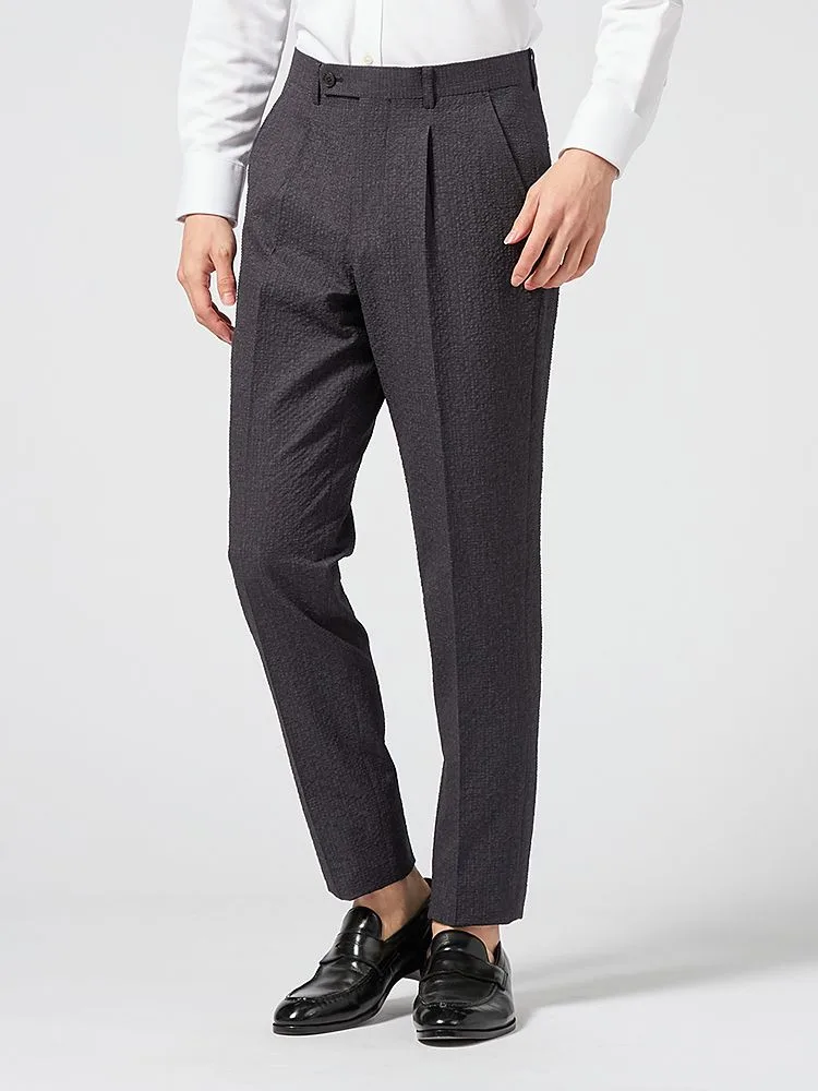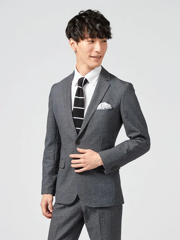 【上下ウォッシャブル】スーツ 2つボタン 軽量 表地ストレッチ素材 ワンタック 織柄無地 nero【i-Suit-アイスーツ-】春夏【スリムデザイン】(C.グレー)