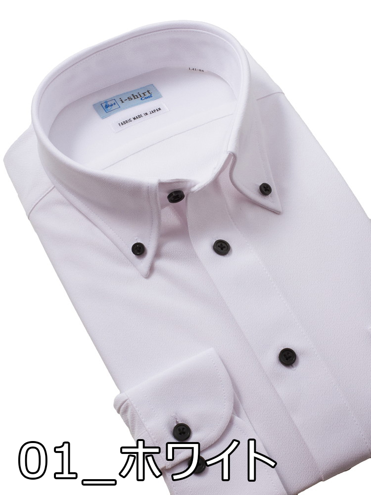 【形態安定】アイシャツ長袖ワイシャツボタンダウン織柄無地i-shirt通年